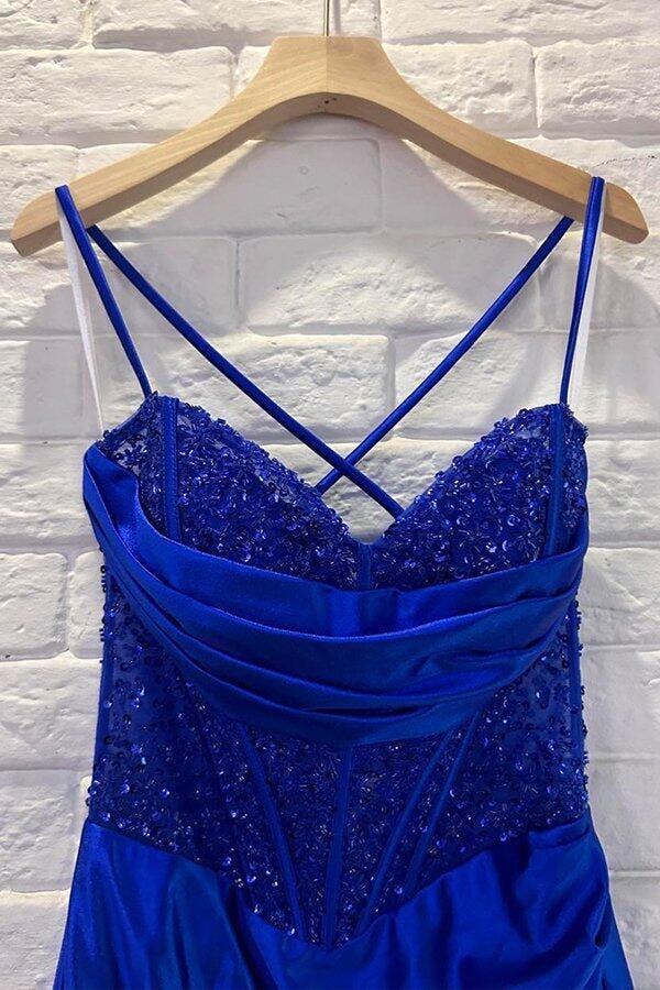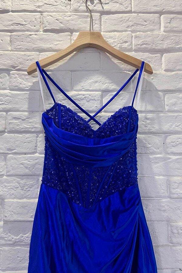 Sparkly Royal Blue Tight Corset Mini Dress with Lace Up Back