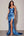 Blue Mermaid Burnout Velvet Corset Prom Dress with Slit