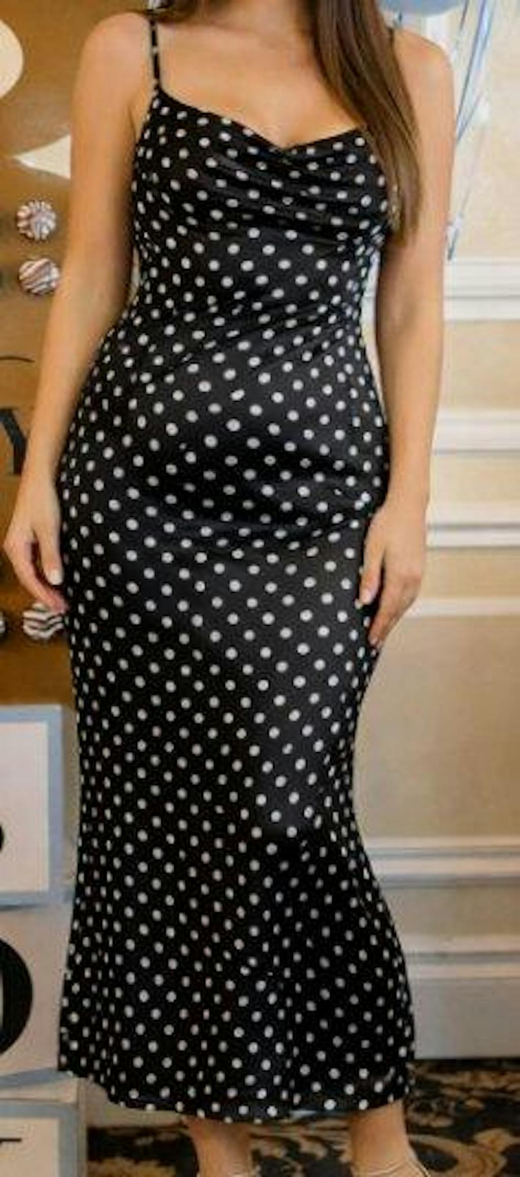 Mermaid White Black Polka Dot Wedding Guest Dress