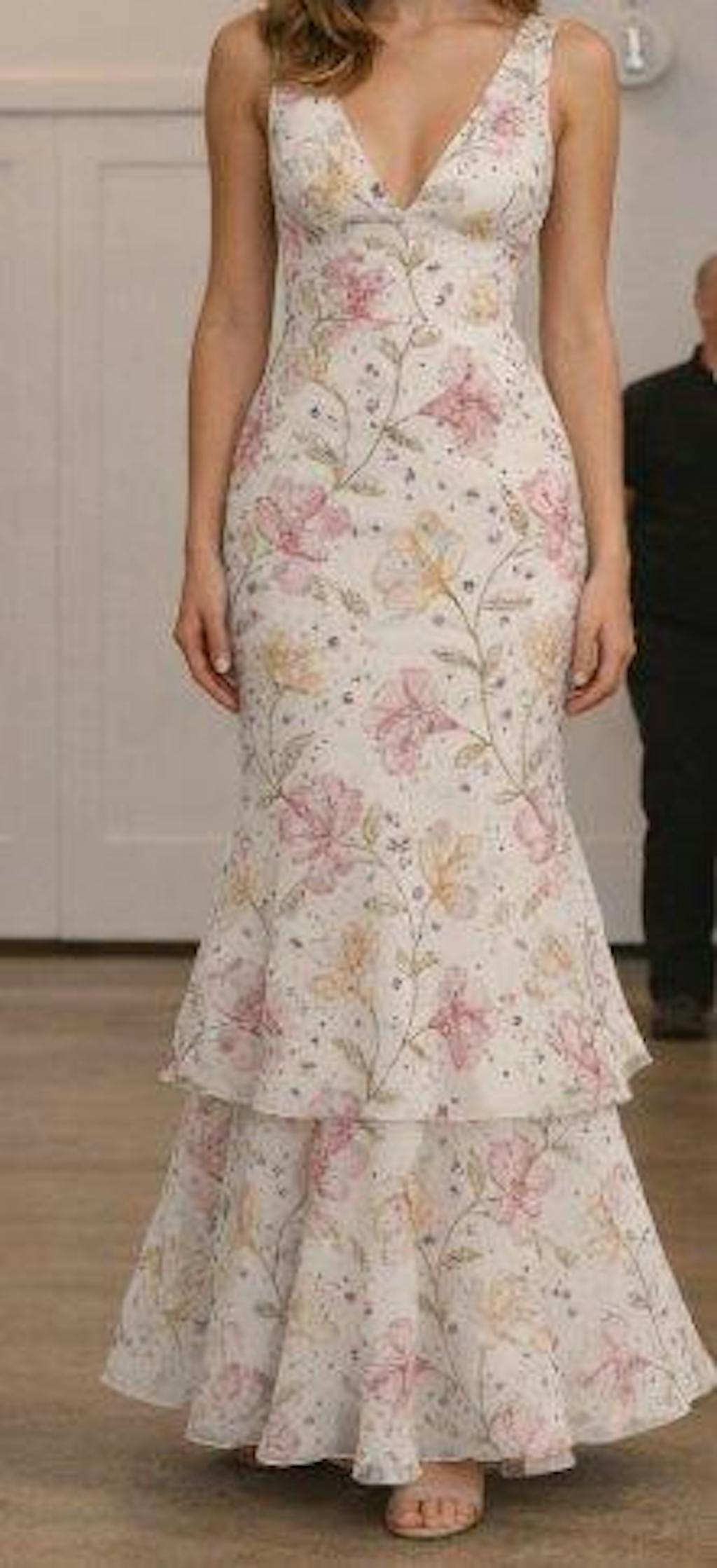 Pink Floral Mermaid V Neck Maxi Wedding Guest Dress