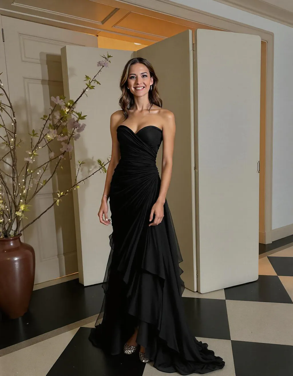 Elegant Sweetheart Ruched Ruffled Black Tie Dress