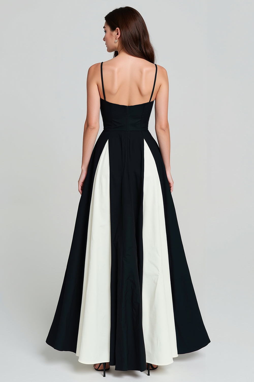 Black and White A Line Spaghetti Straps Long Formal Dress