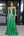 Green Tulle Slit Beaded Floor Length Prom Dress with 3D Appliques