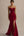 Halter Burgundy Velvet Sheath Holiday Dress With Slit