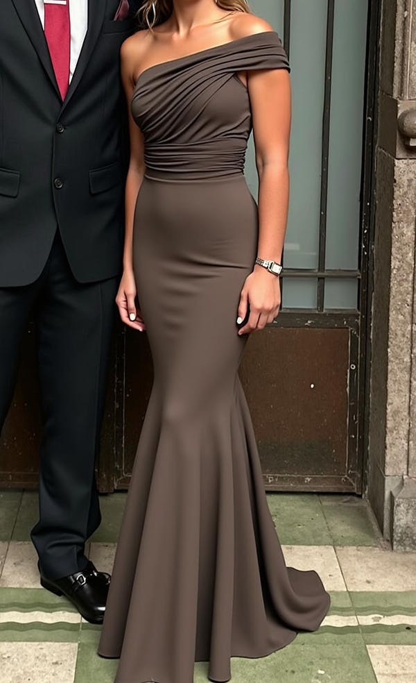 I wasn’t sure how to stand out without being flashy—then I put on this dress. The coffee hue is earthy yet glamorous, the one-shoulder cut is sexy but sophisticated, and the mermaid silhouette? It flared out just right at the bottom, making me feel powerful with every step. I danced all night and never once felt self-conscious. This dress doesn’t just fit—it commands attention.