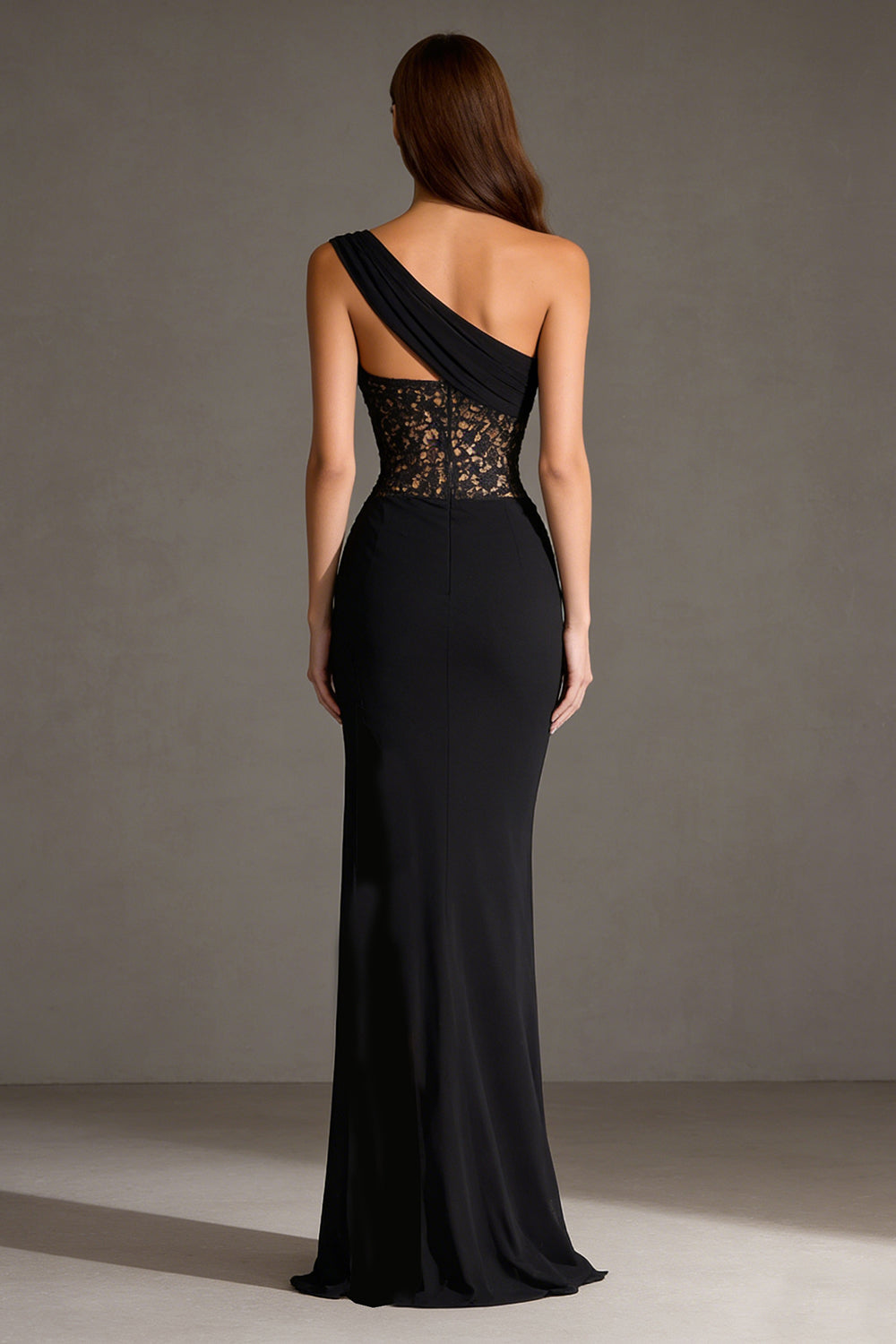 One Shoulder Black Lace Maxi Formal Dress