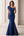 Navy Mermaid Ruched V Neck Gala Dress with Slit