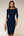 Peaked Lapel Navy Bodycon Midi Work Dress
