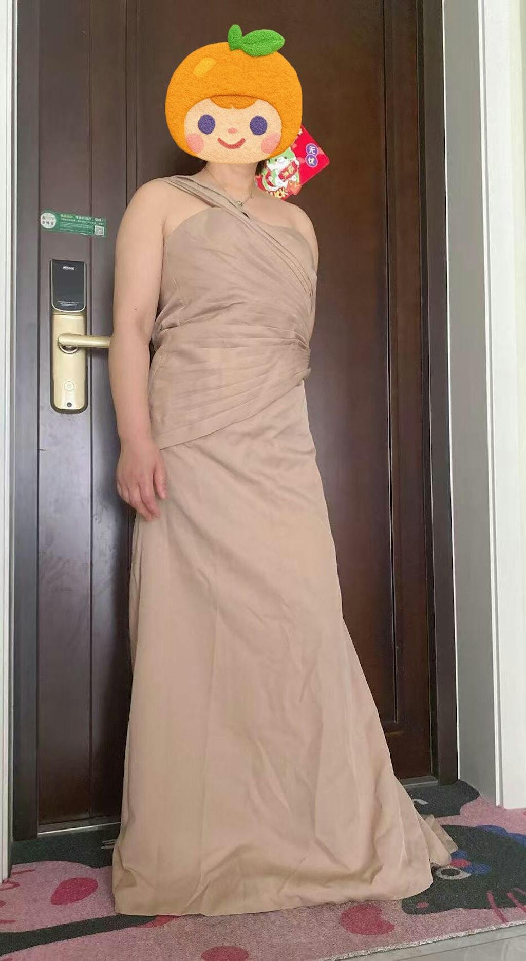 The sheath fit hugs in all the right places without feeling restrictive, and the one‑shoulder design adds a modern, chic edge. The light khaki is subtle yet unique for a polished look at any formal event.