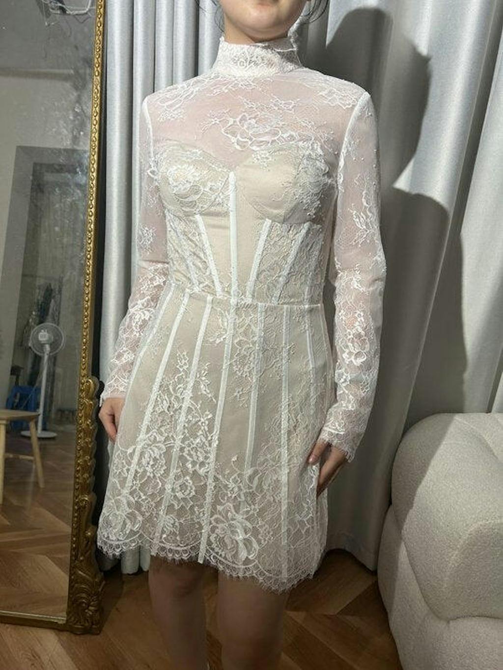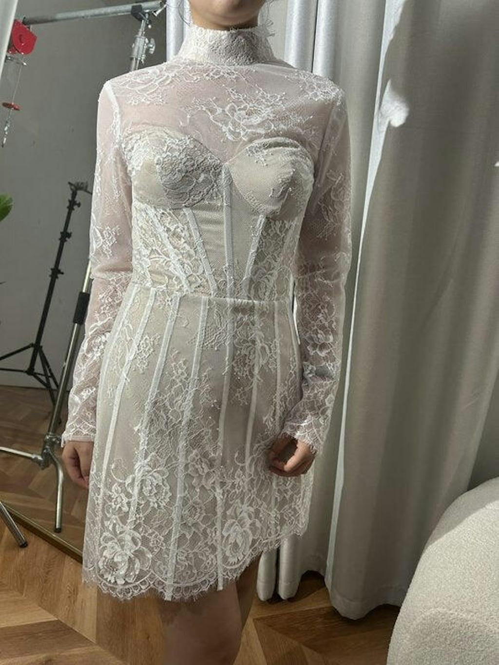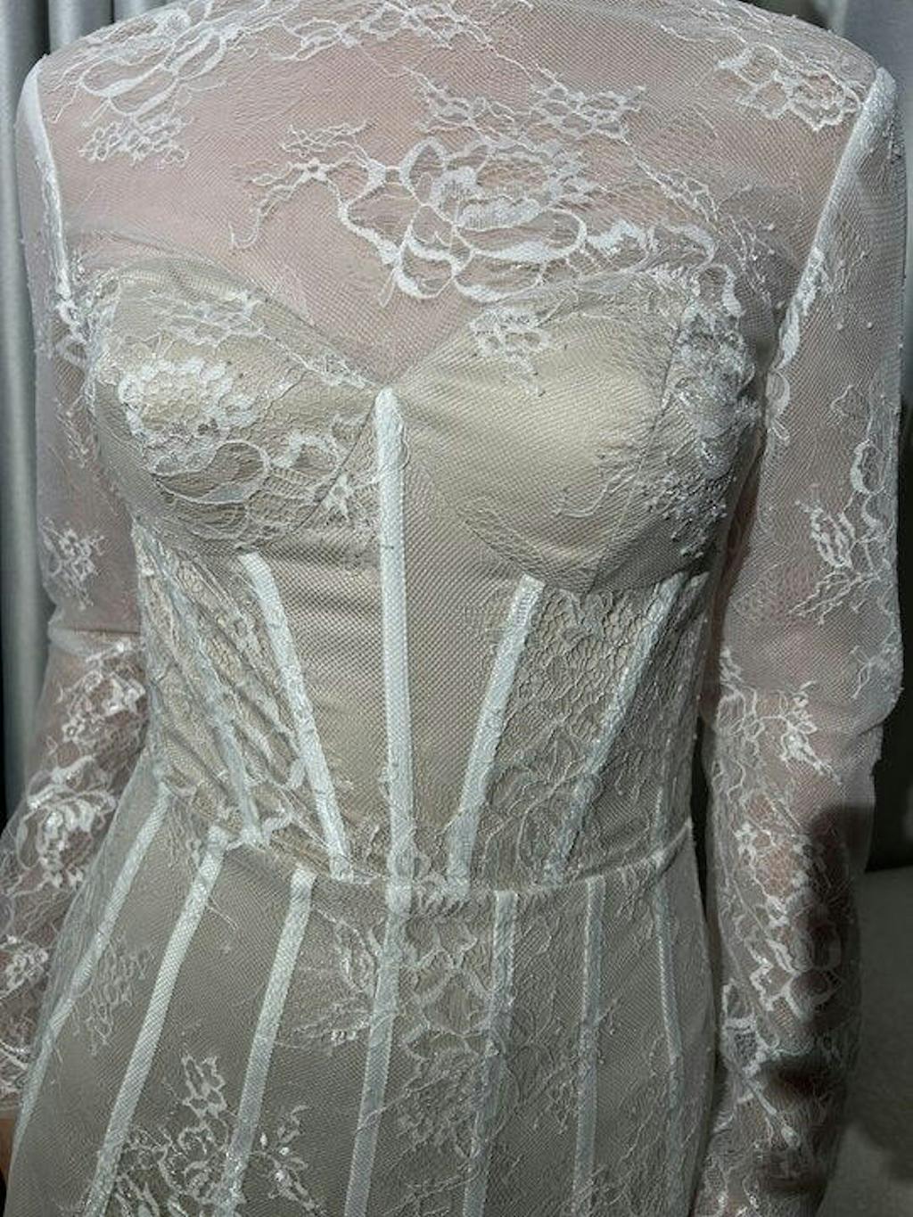 Delicate Lace White Corset Mini Dress with Long Sleeves
