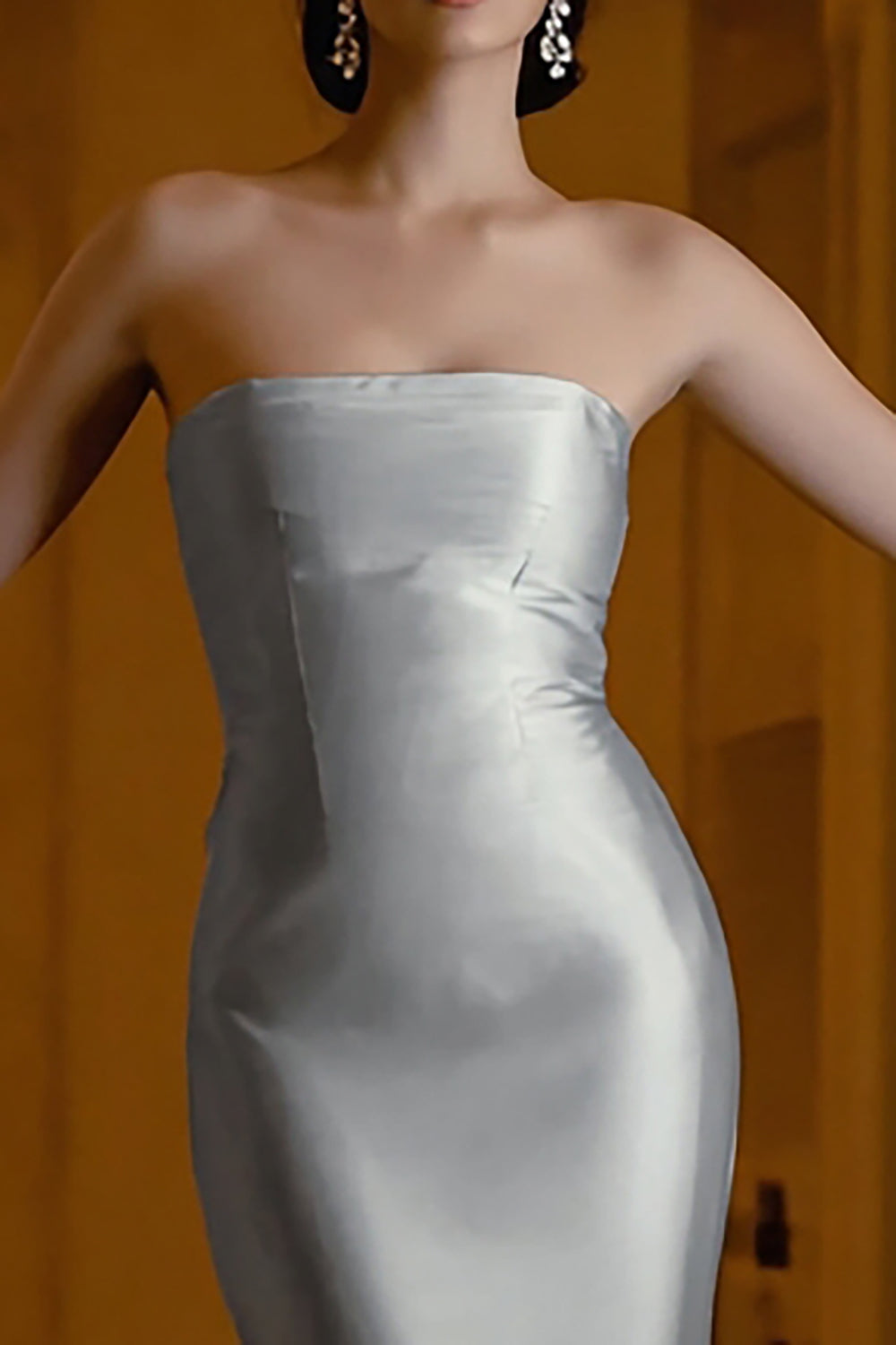 Strapless Silver Sheath Ankle-Length Formal Dress