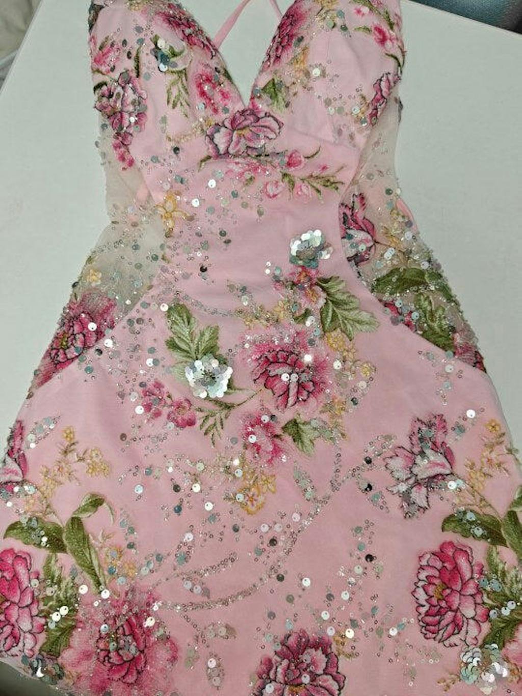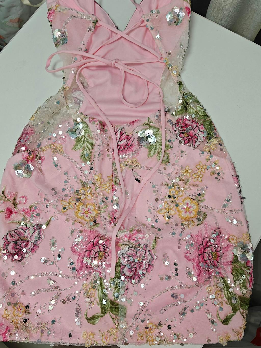 I wanted something fun for a party, and this dress delivered. The pink is vibrant and the floral appliques make it feel trendy and unique. I got so many compliments on the details—it’s clear this dress was thoughtfully designed. Felt confident, sexy, and totally stylish!