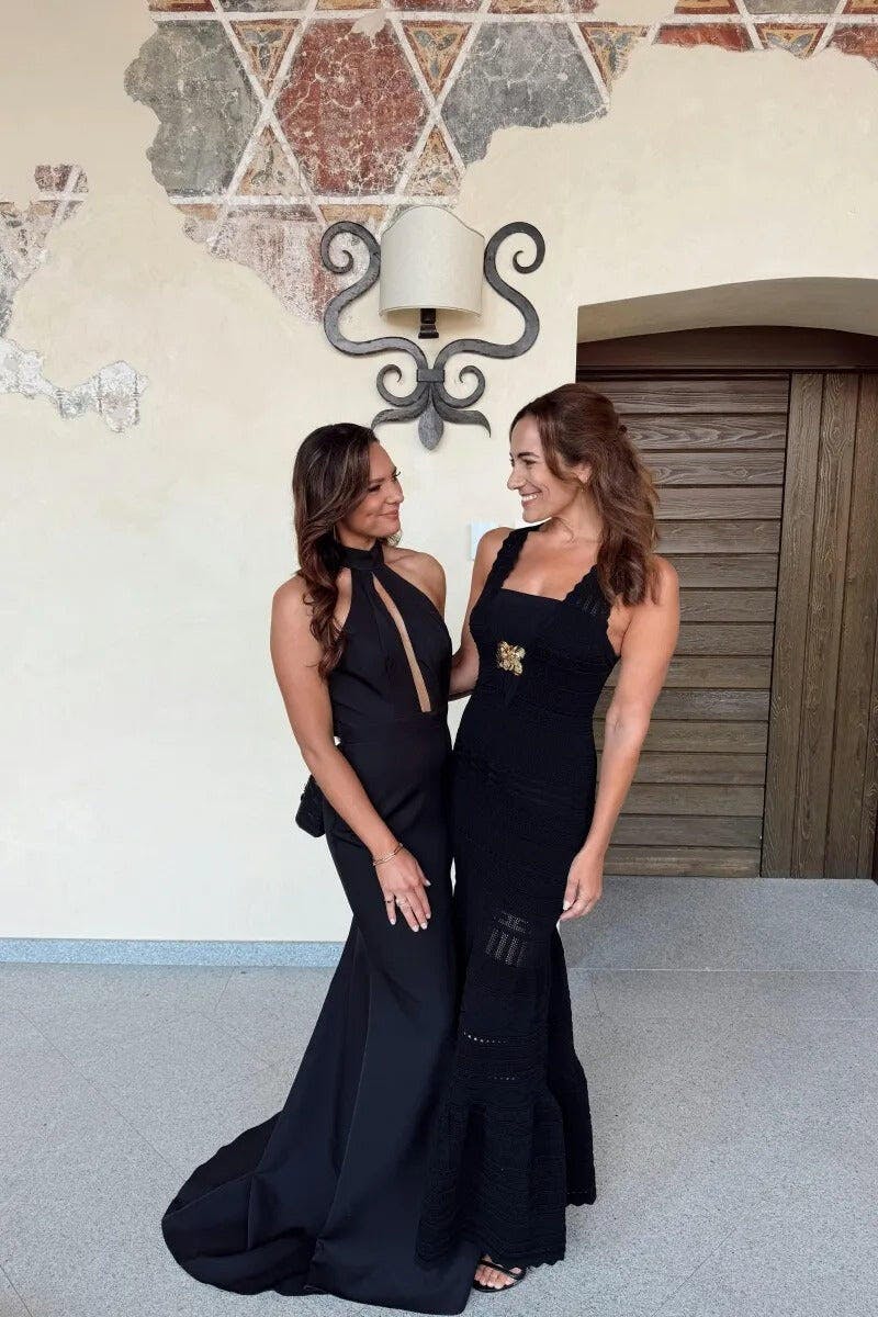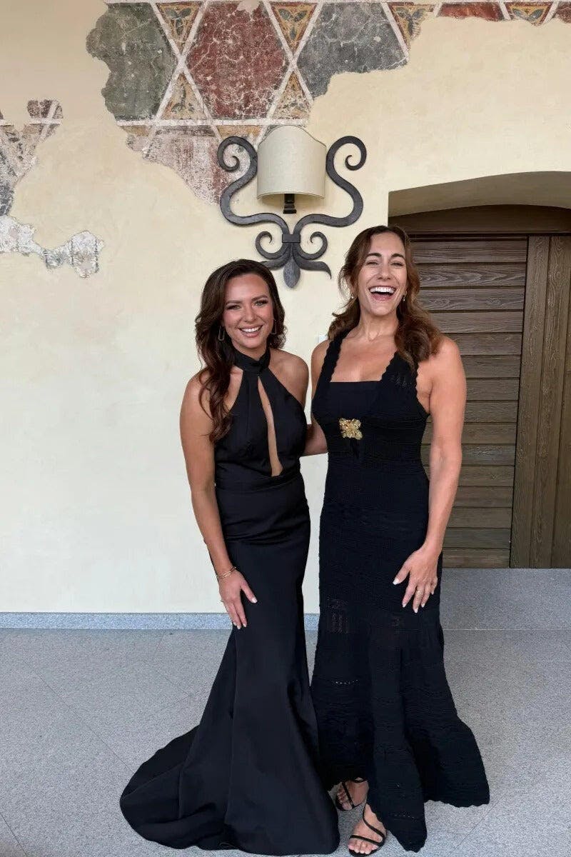 Black Mermaid Halter Neck Satin Formal Dress