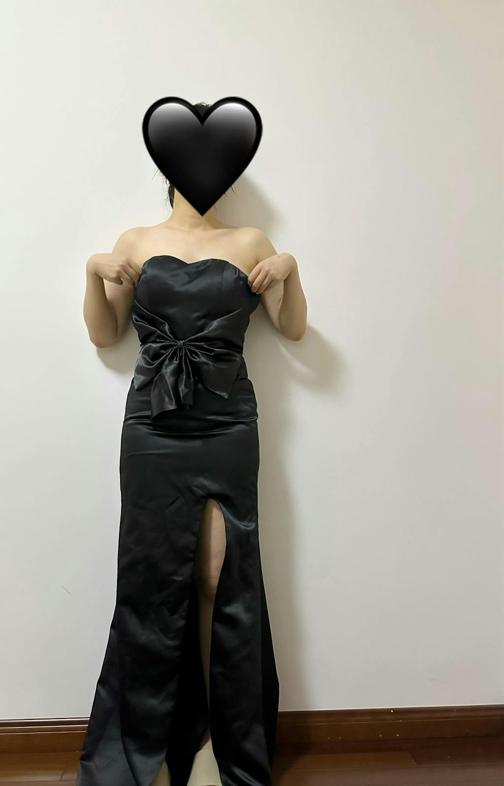 Duchess Satin Mermaid Bow Strapless Black Formal Dress with Slit