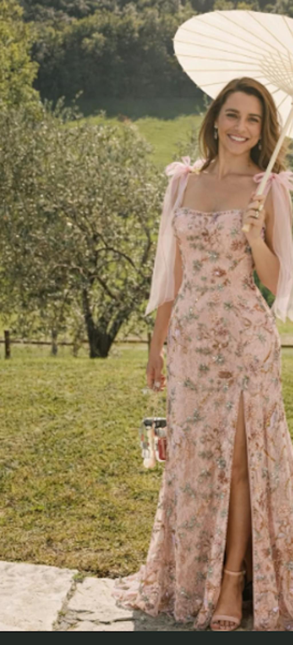 Floral Sequin Mermaid Pink Prom Dress with Bow