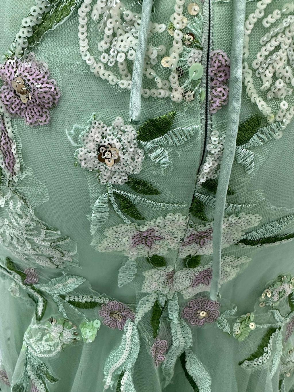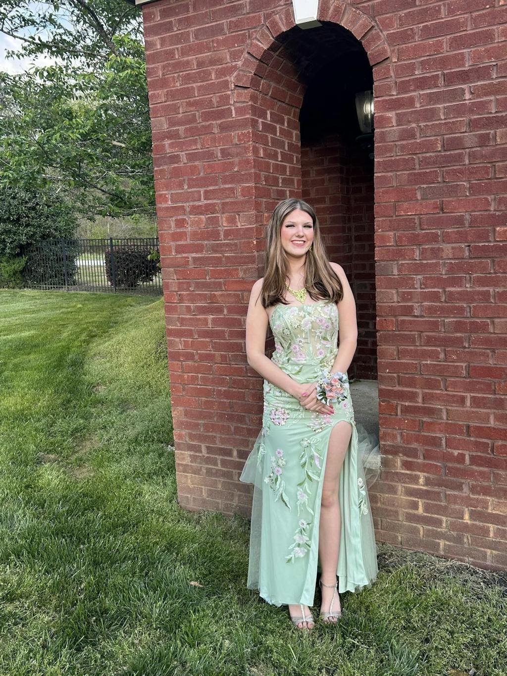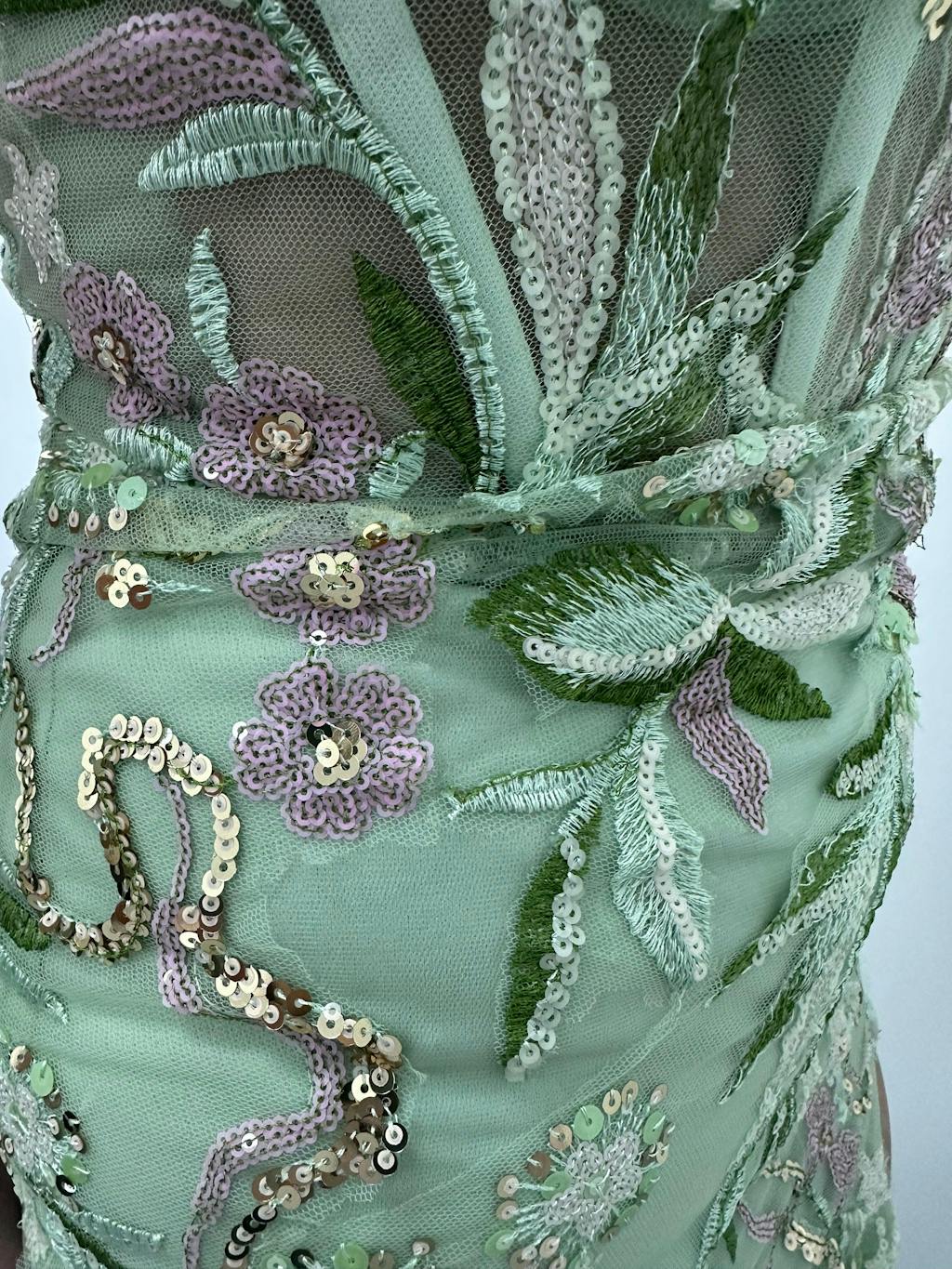 Green Corset Floral Sequined Mermaid Tulle Prom Dress with Slit