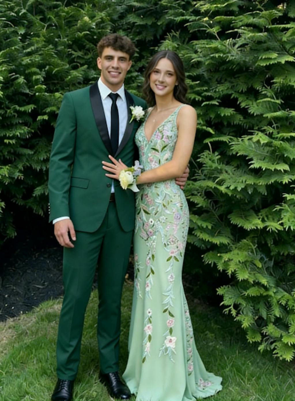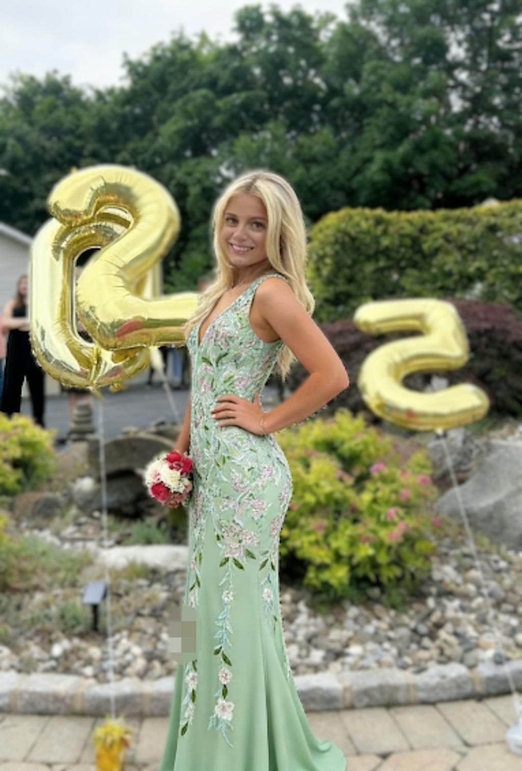 Light Green Floral Sheath V-Neck Prom Dress with Appliques