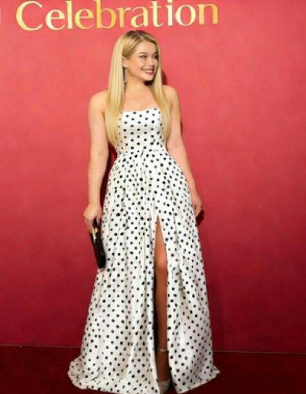 White Black Dot Strapless A-Line Prom Dress With Slit