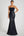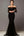 Ruffled Fit and Flare Slit Satin Black Prom Dress with Scarf