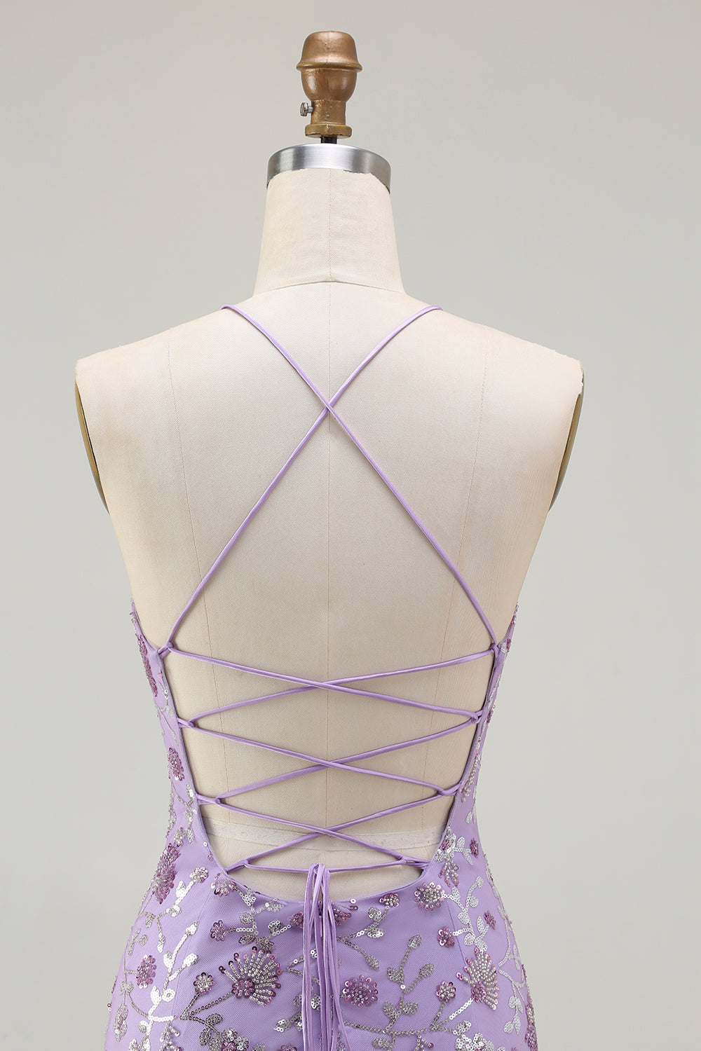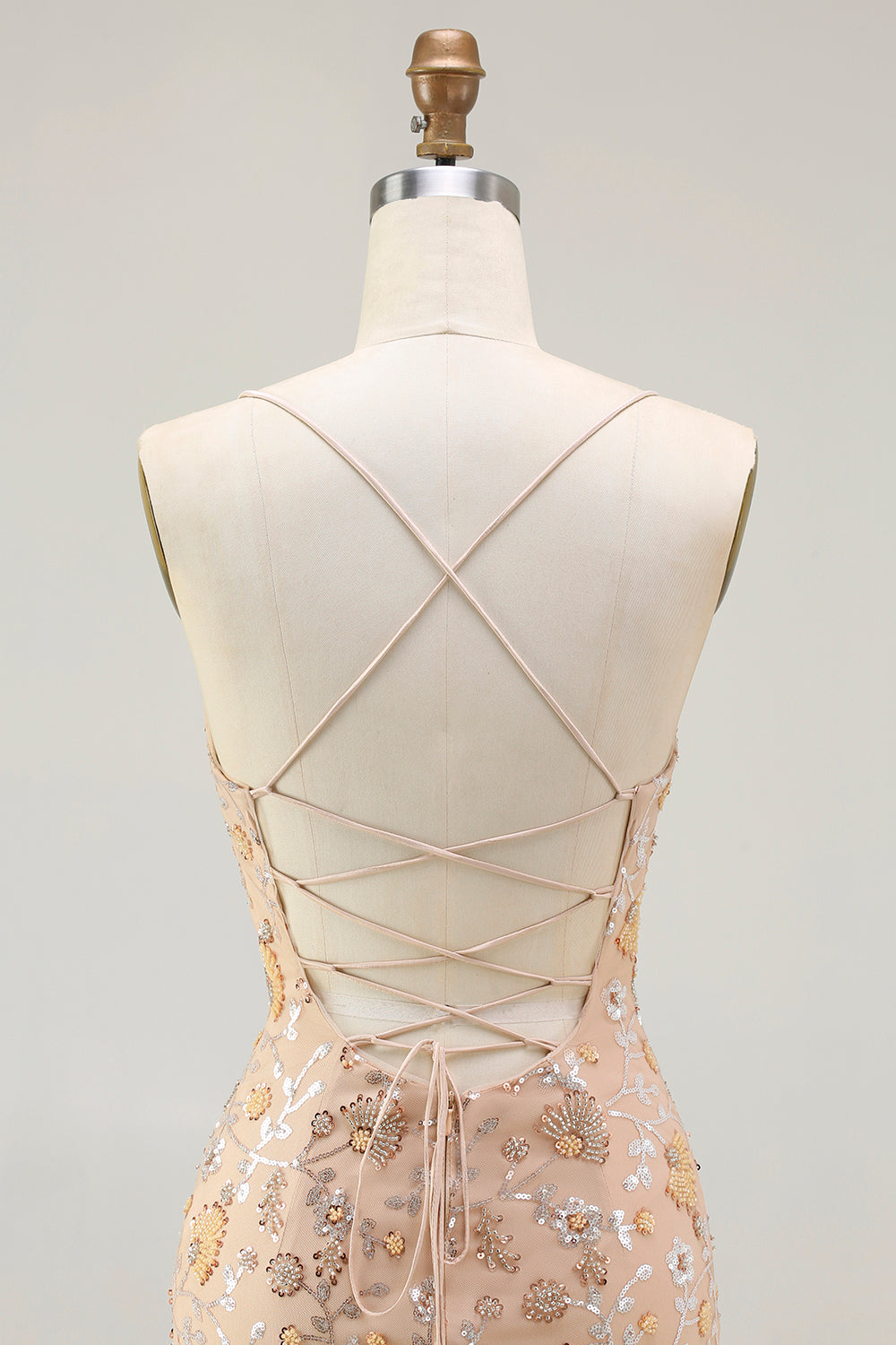 Sparkly Champagne Mermaid Spaghetti Straps Prom Dress With Slit