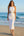 Blue Floral Corset A Line Midi Wedding Guest Dress