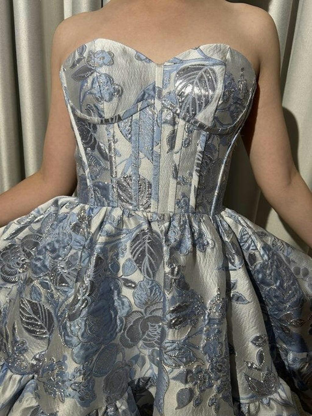 Beauty Blue A Line Pleated Strapless Corset Floral Mini Dress