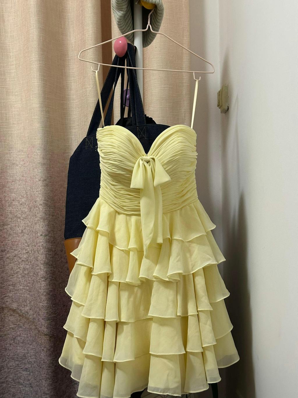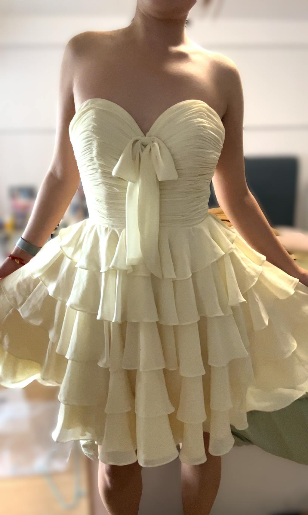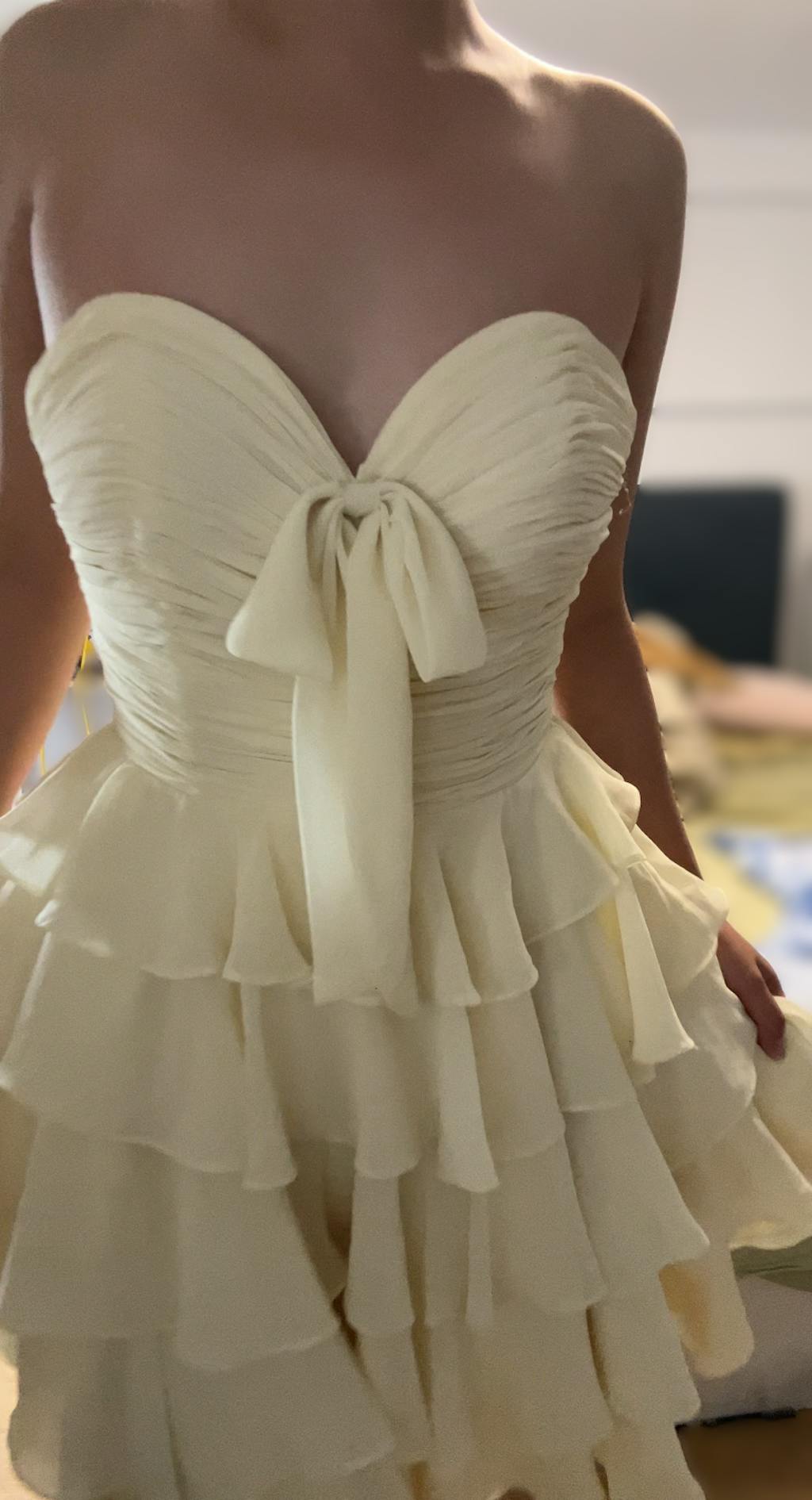 Yellow A Line Tiered Strapless Homecoming Dress with Bow