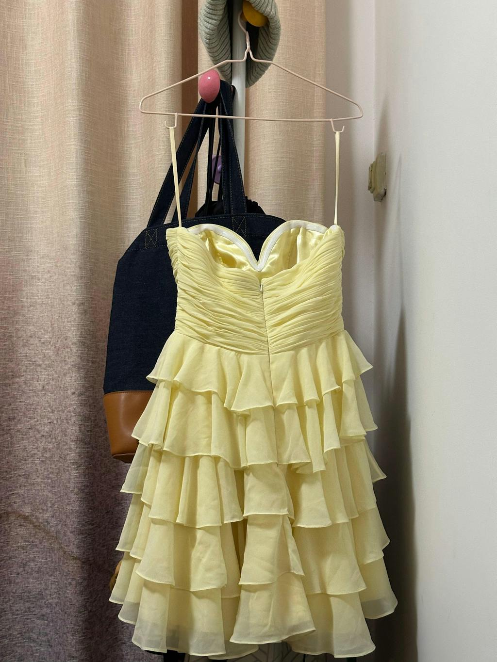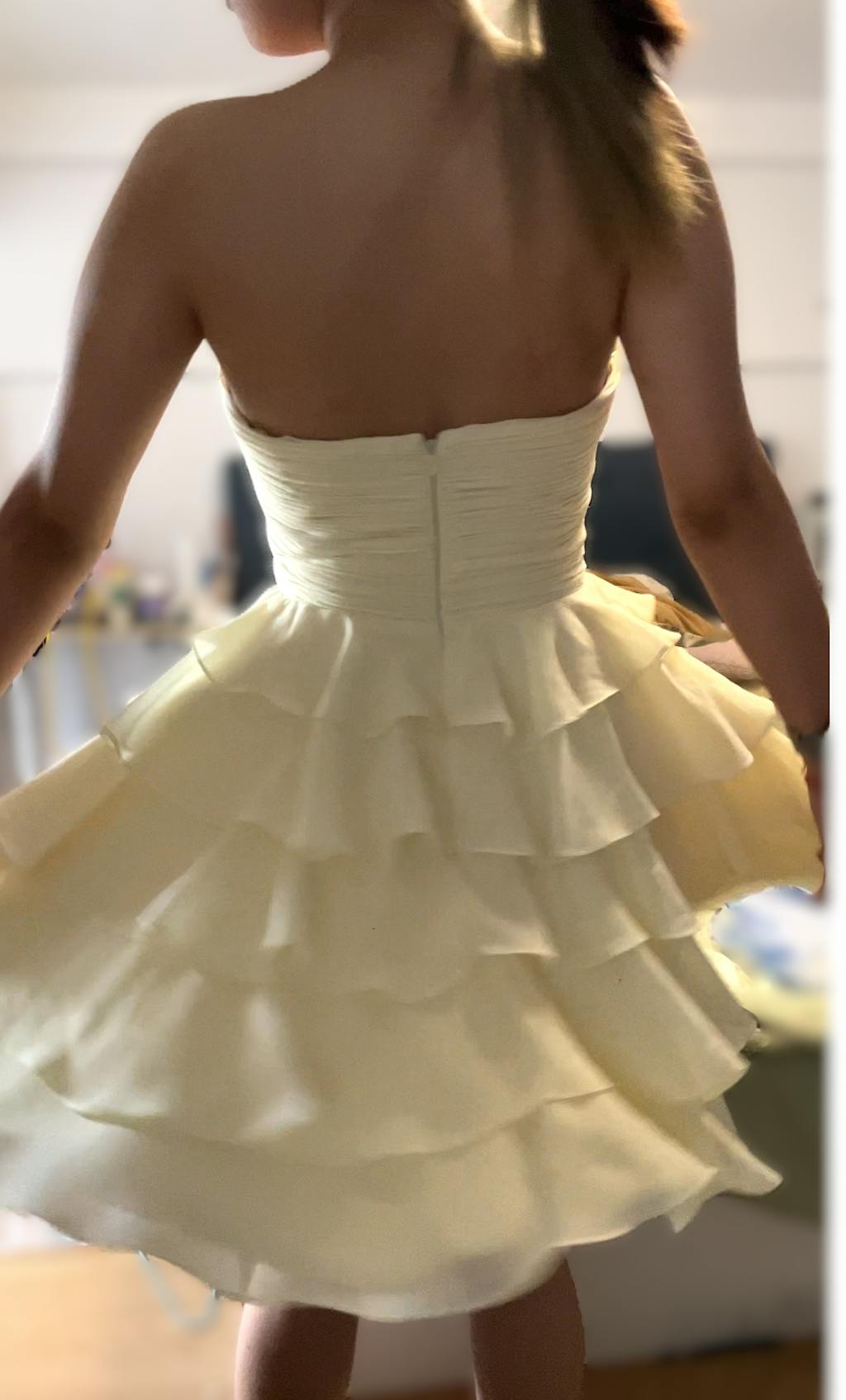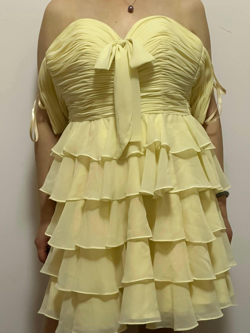 Yellow A Line Tiered Strapless Homecoming Dress with Bow