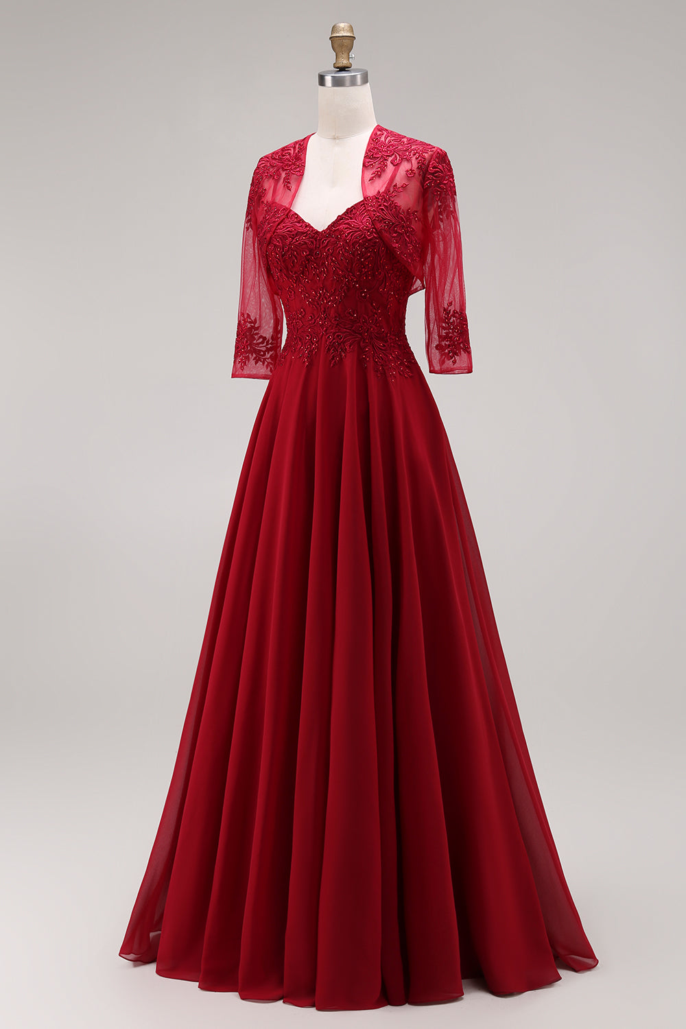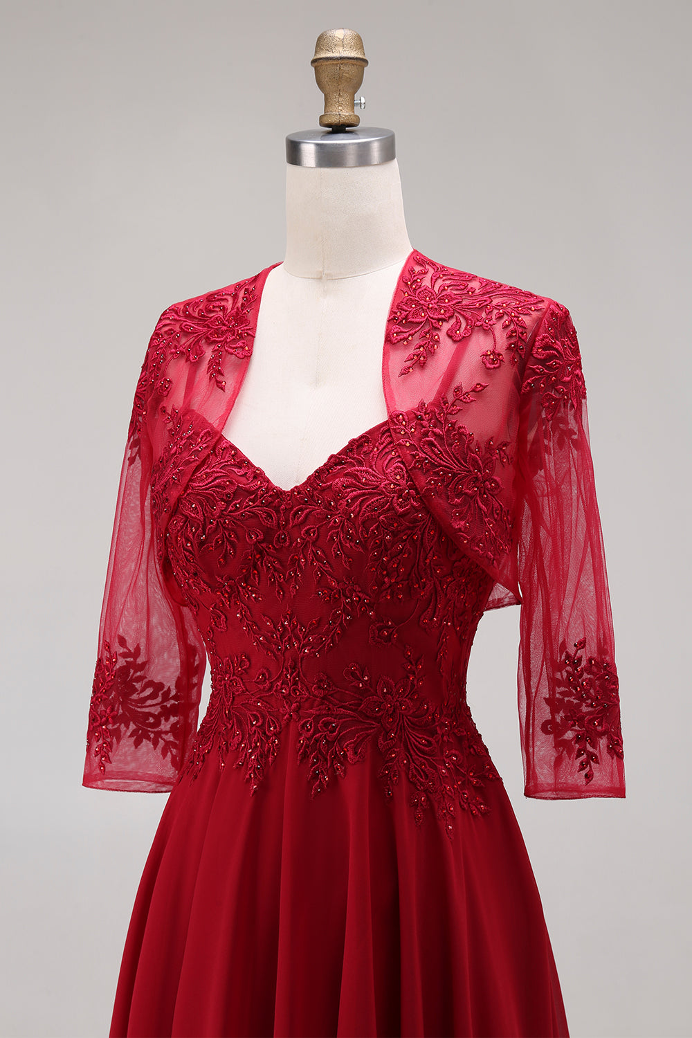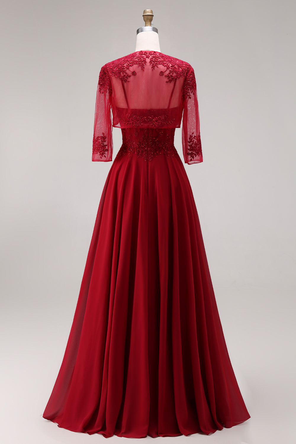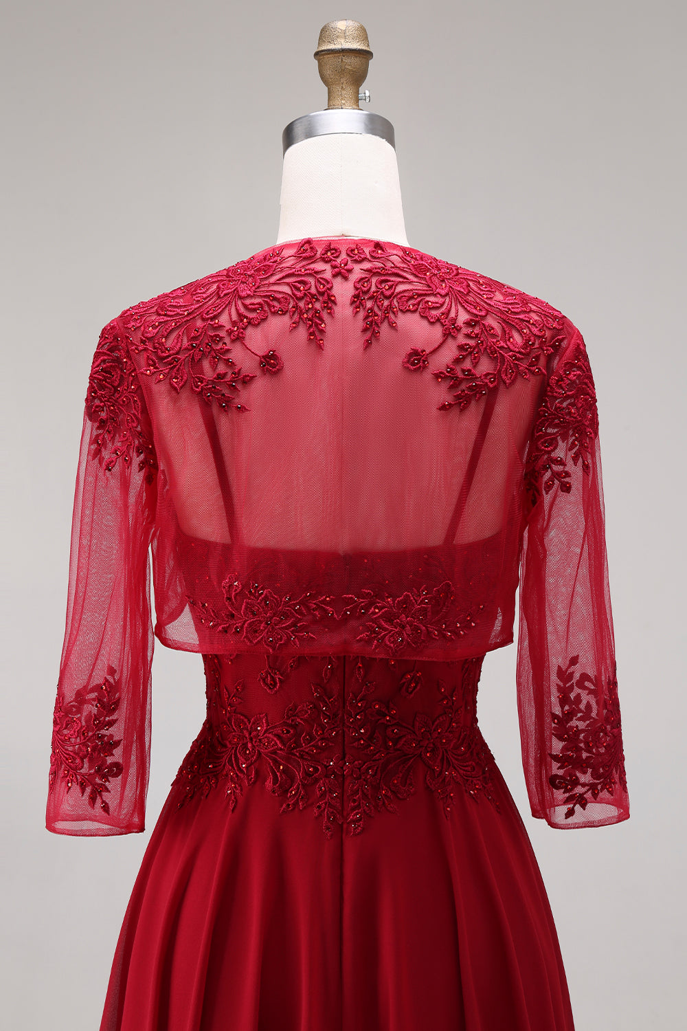 2 Piece Burgundy A Line Appliqued Beaded Mother of the Bride Dress