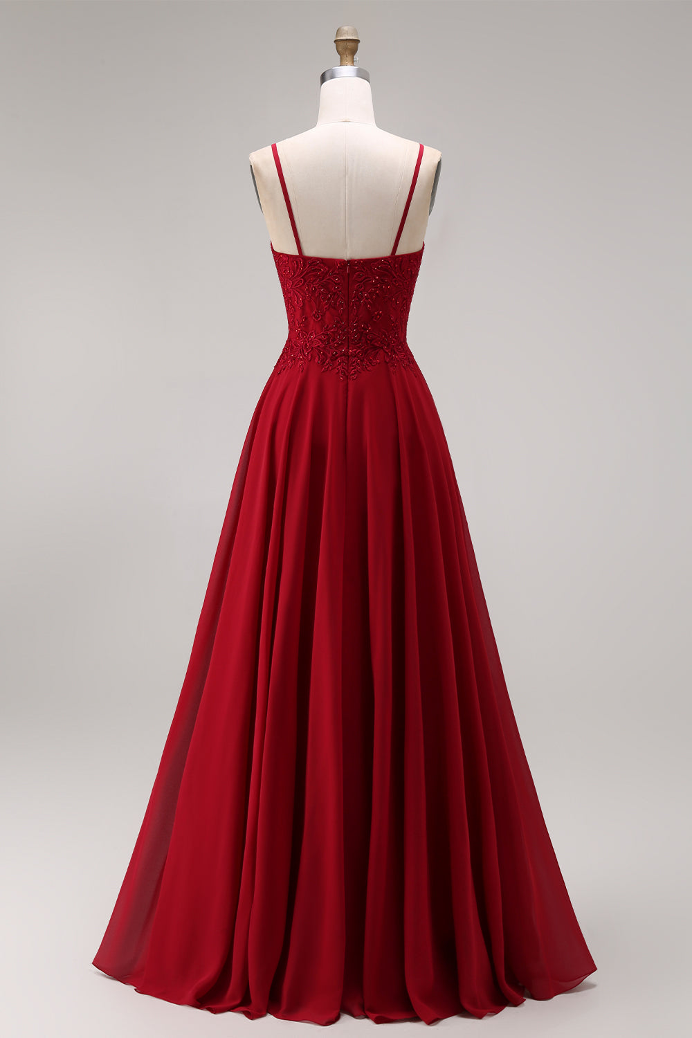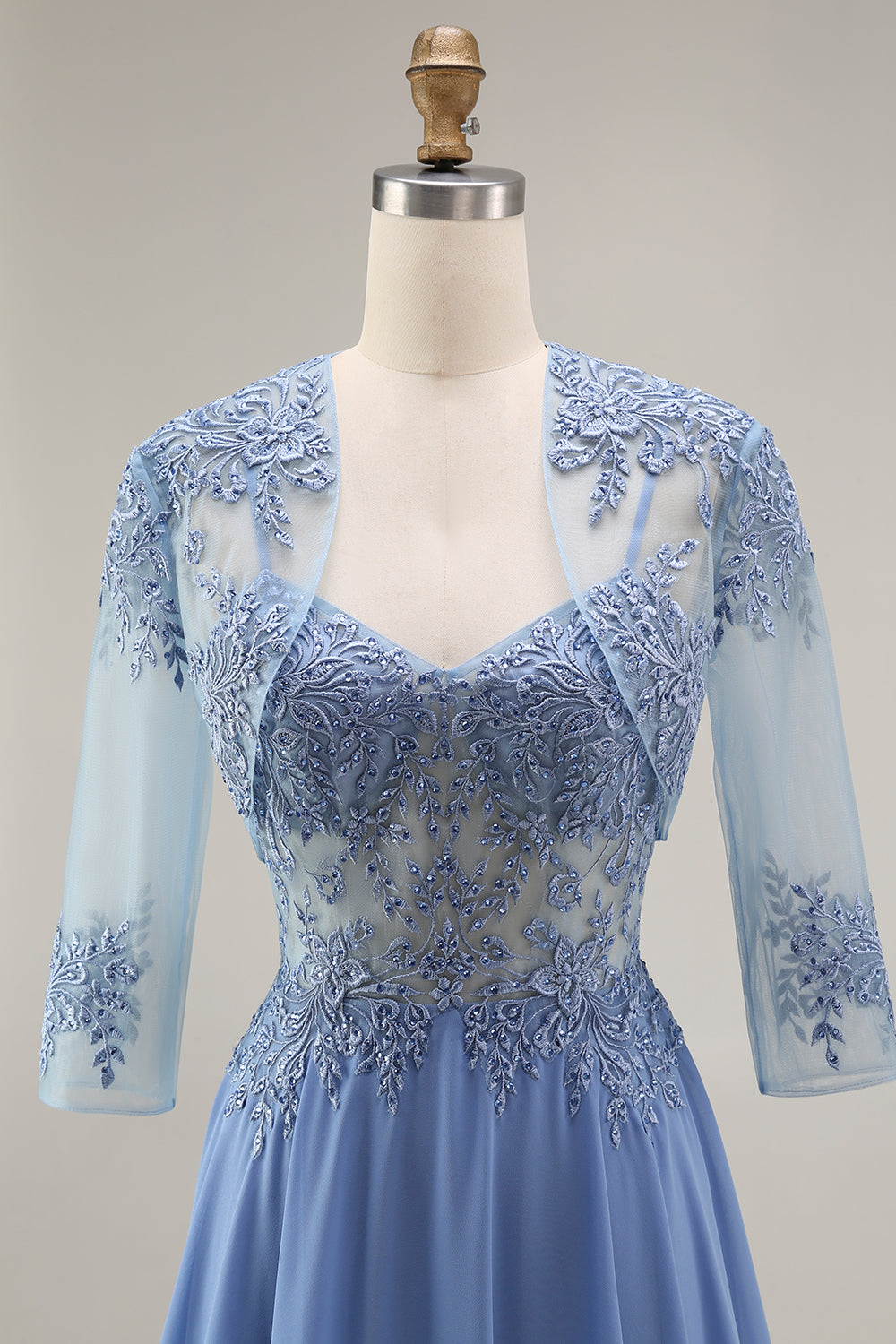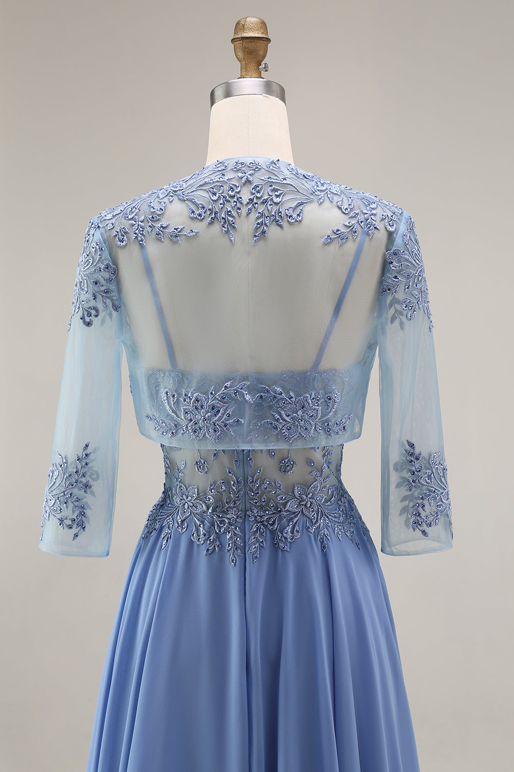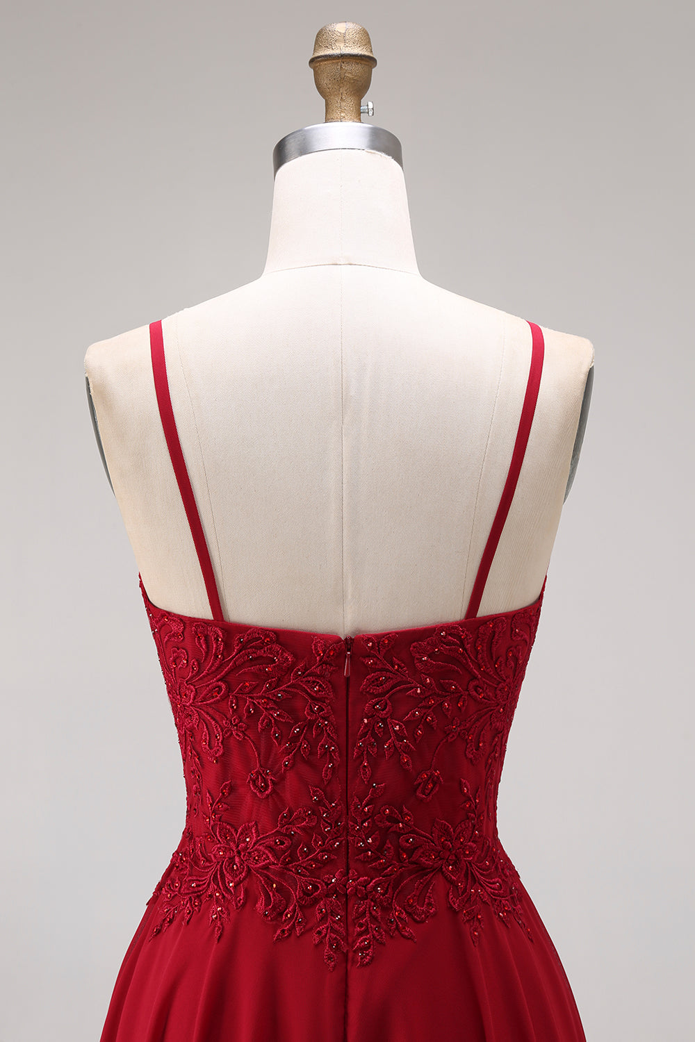 2 Piece Burgundy A Line Appliqued Beaded Mother of the Bride Dress