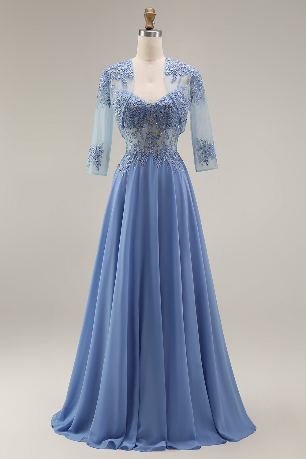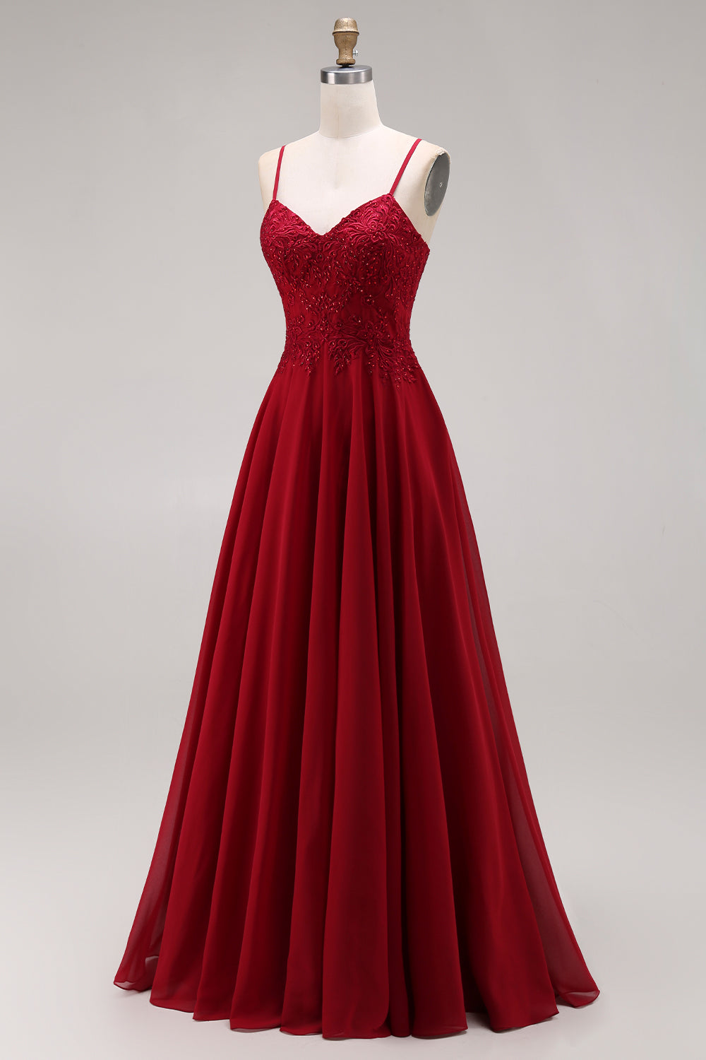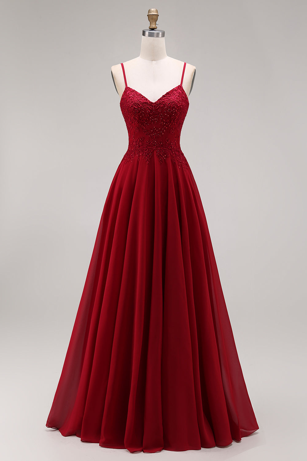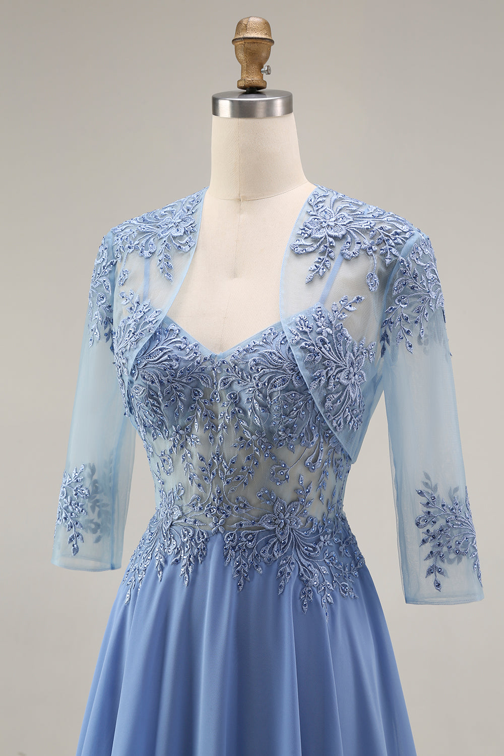 2 Piece Burgundy A Line Appliqued Beaded Mother of the Bride Dress