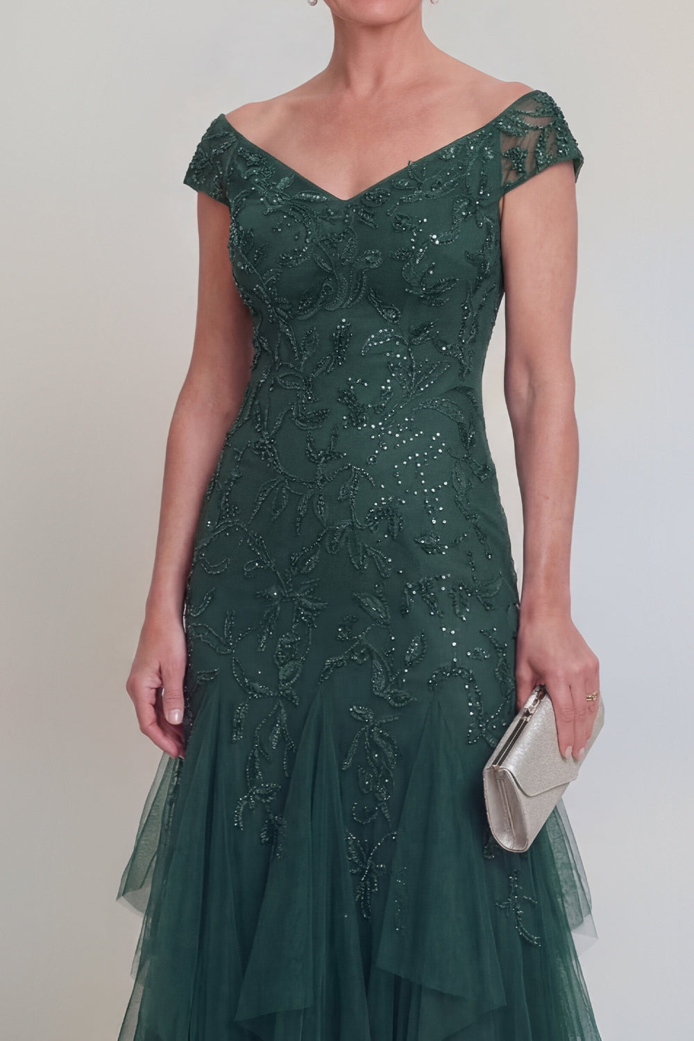 Appliqued Ruffled Dark Green A Line Maxi Mother of the Bride Dress