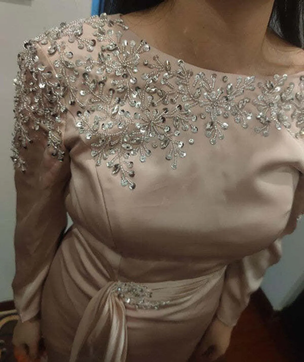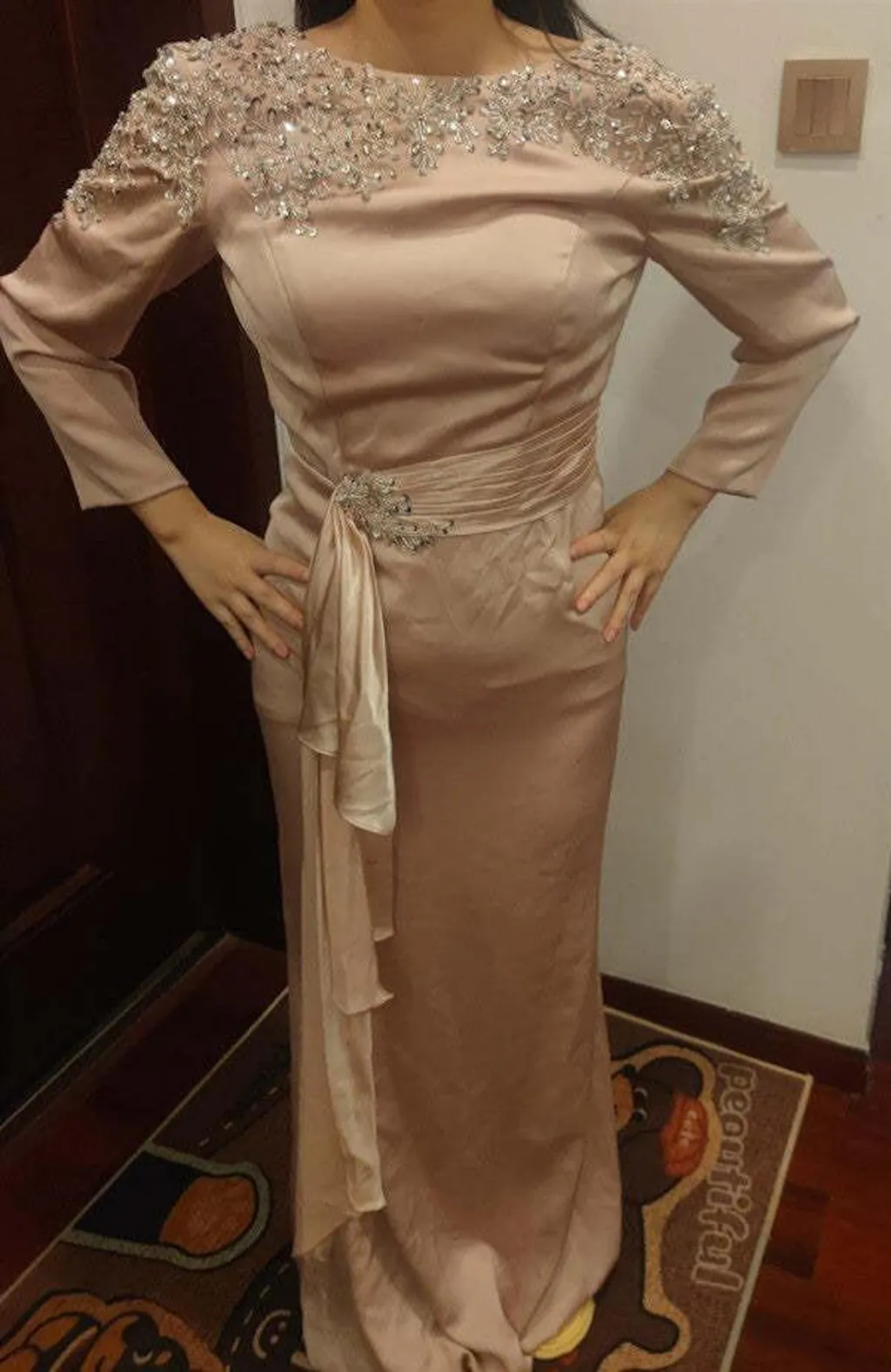 Blush Appliqued Long Sleeve Sheath Mother Of The Bride Dress with Sash