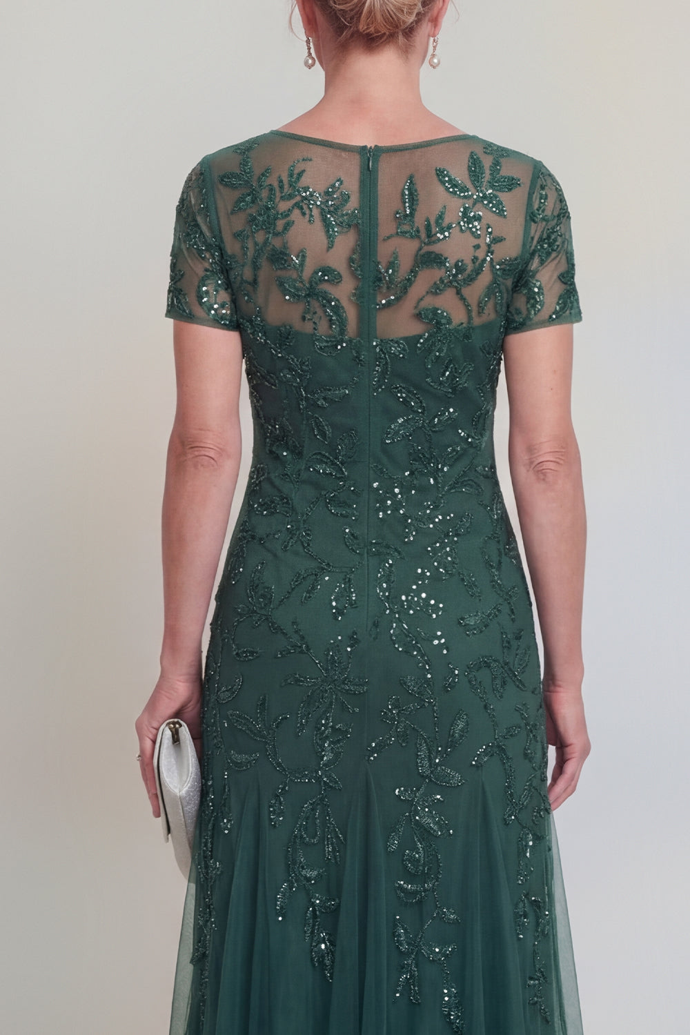 Dark Green A Line Sequin Maxi Mother of the Bride Dress