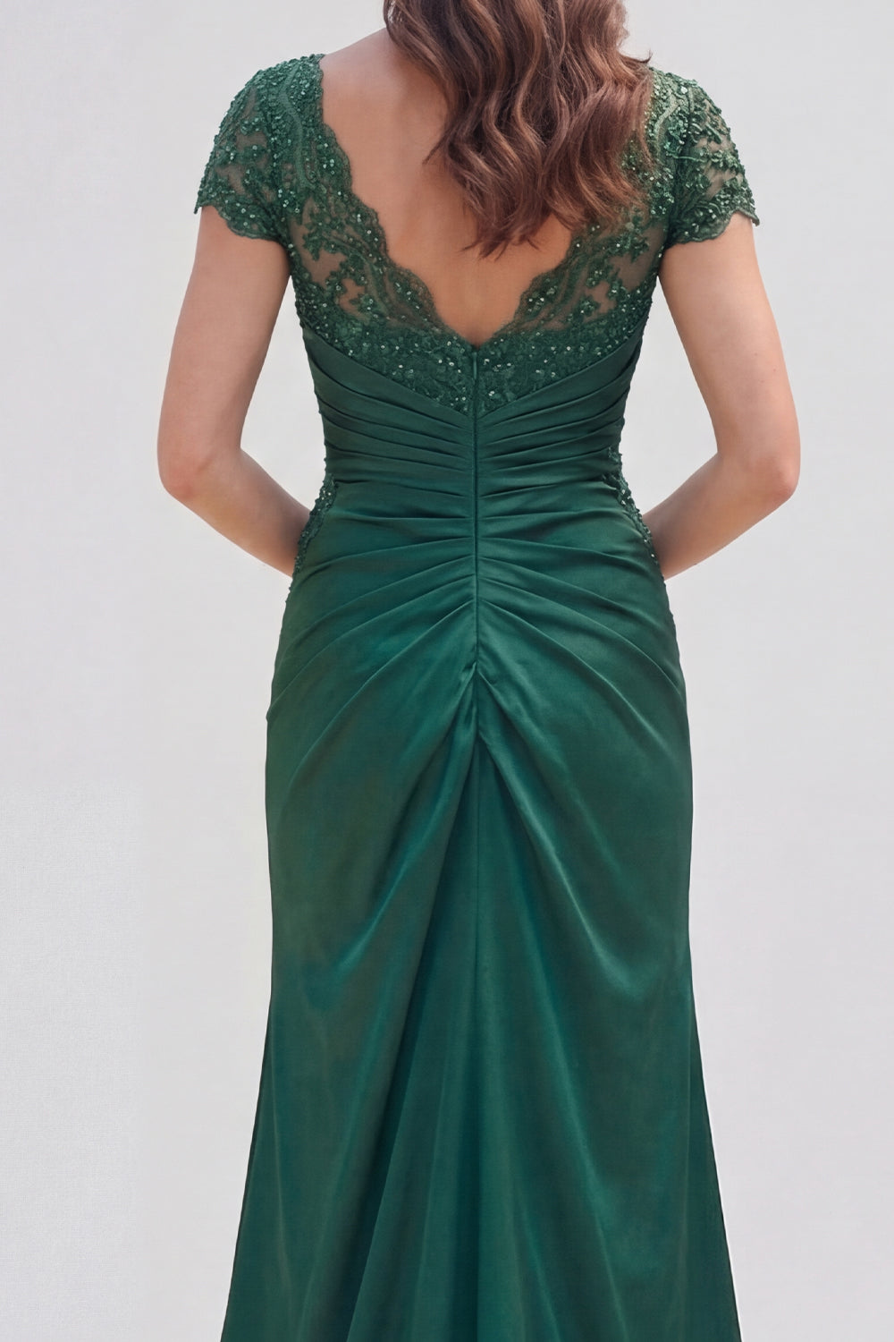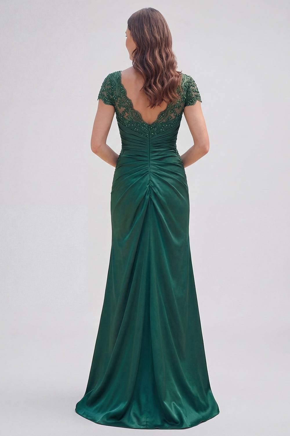 Dark Green Mermaid Ruched Maxi Mother of the Bride Dress