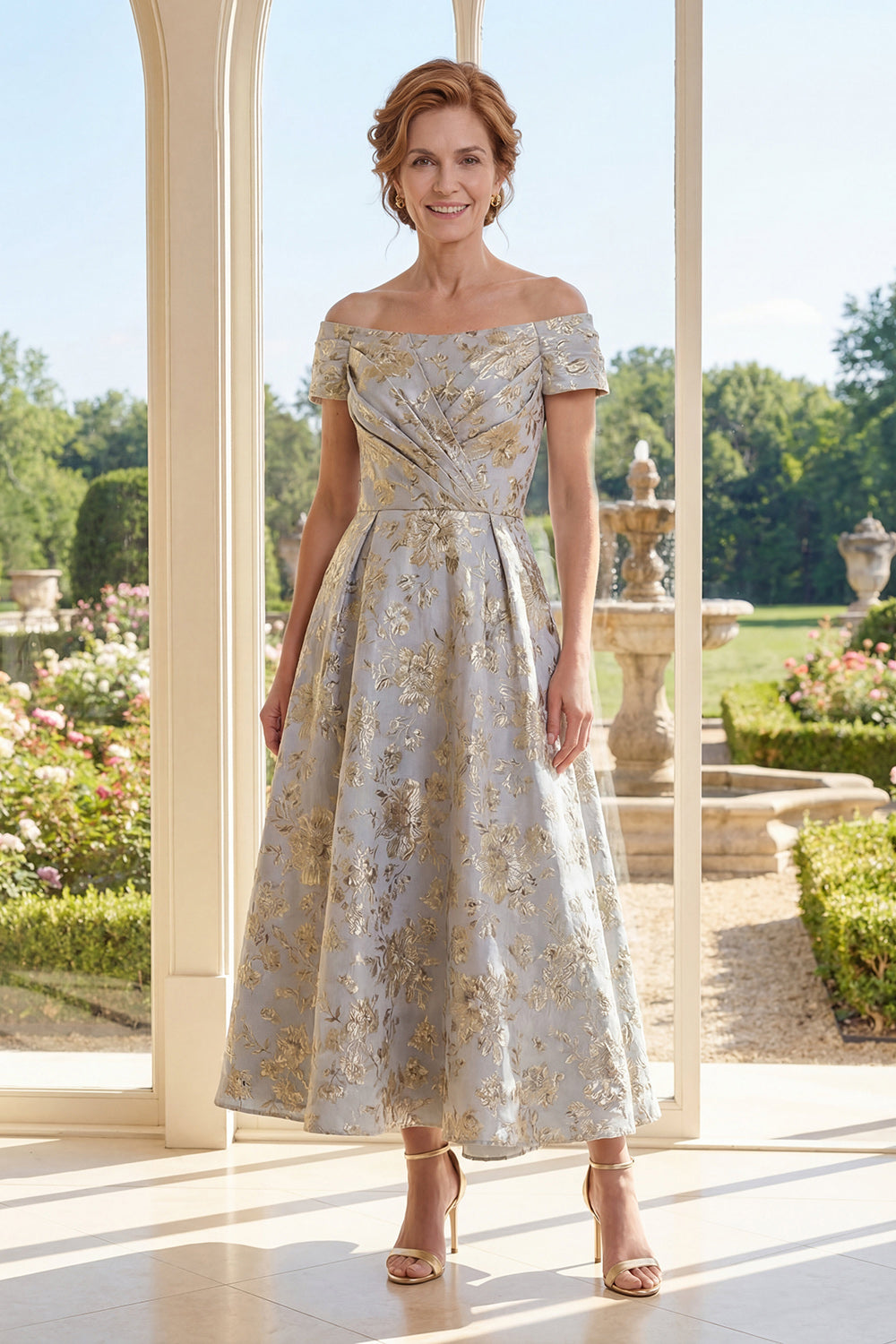 Floral Off the Shoulder Dusty Blue A Line Mother of the Bride Dress