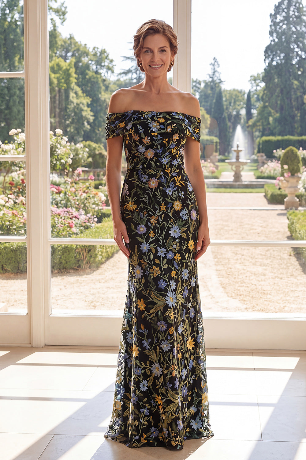 Green Off the Shoulder Mermaid Floral Mother of the Bride Dress