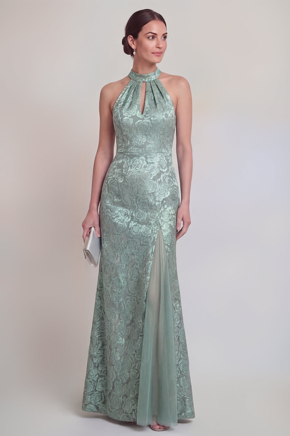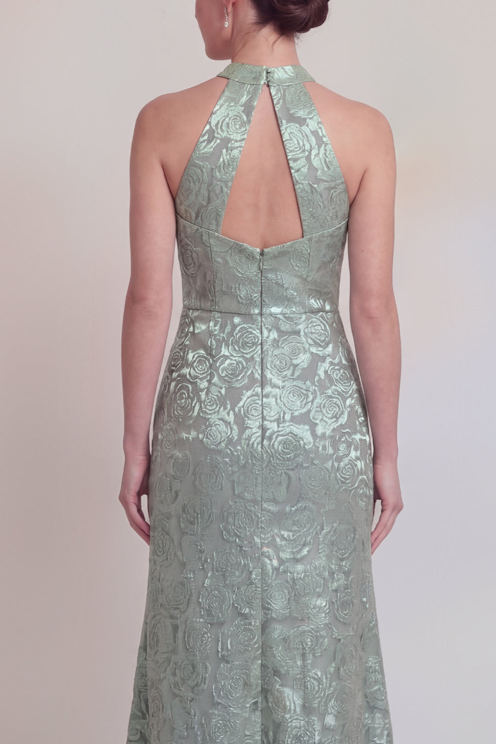 Halter Jacquard Mermaid Sage Green Cut Out Mother of the Bride Dress