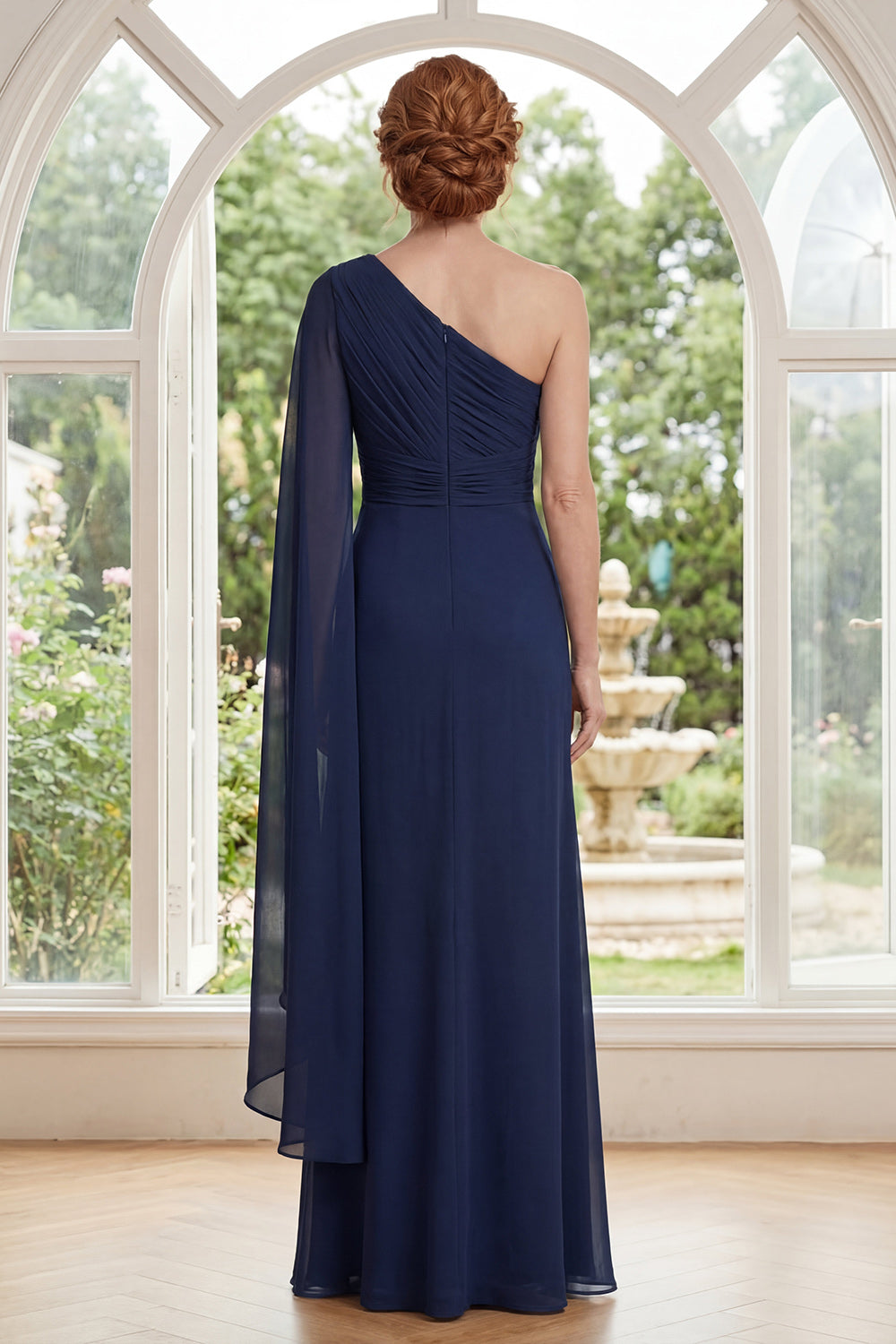 One Shoulder Navy Ruched Maxi Mother of the Bride Dress