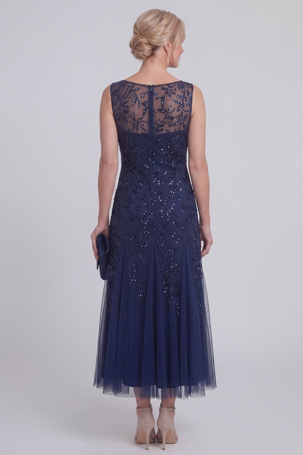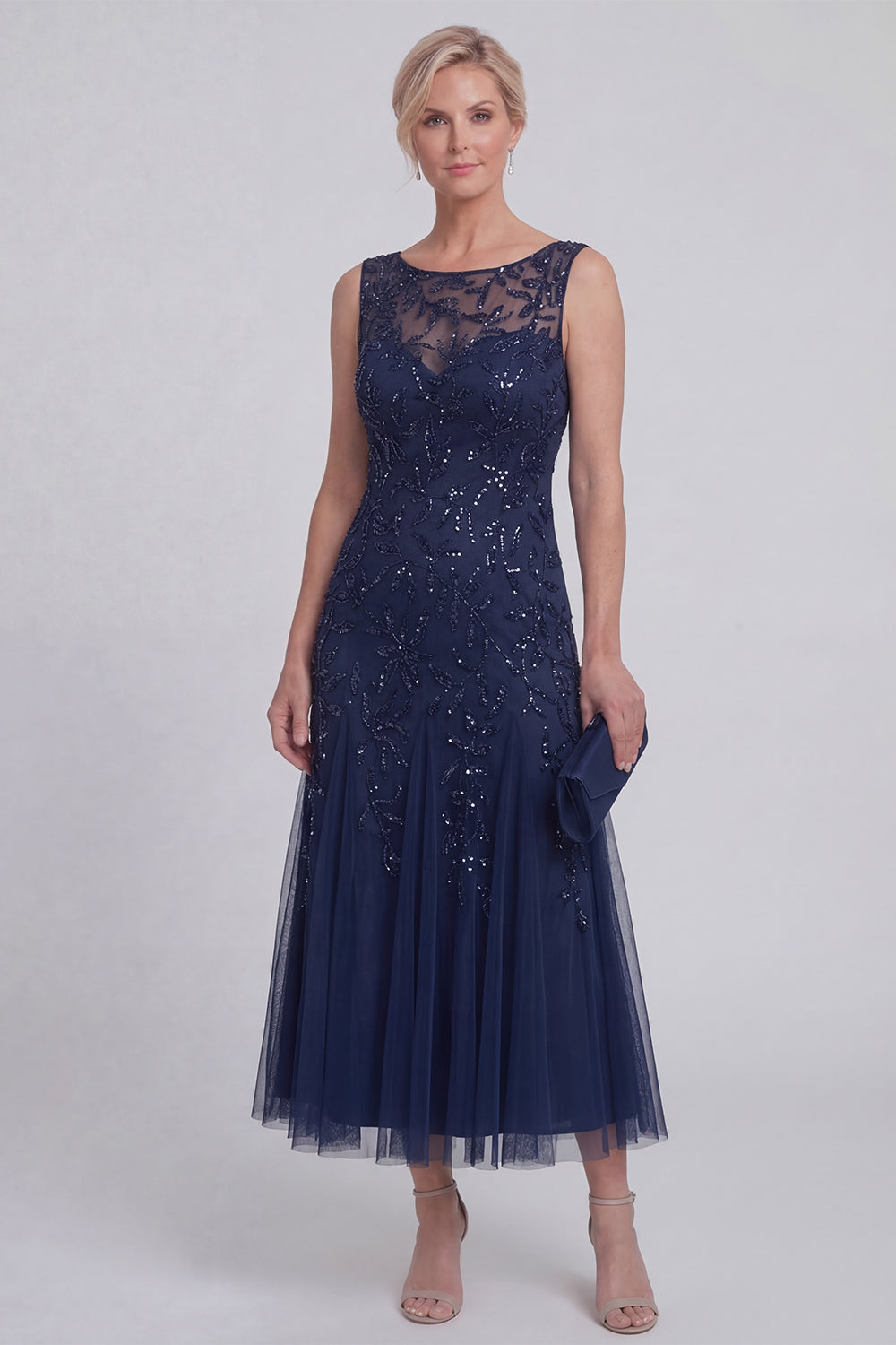 Sparkly Navy A Line Sleeveless Mother of the Bride Dress