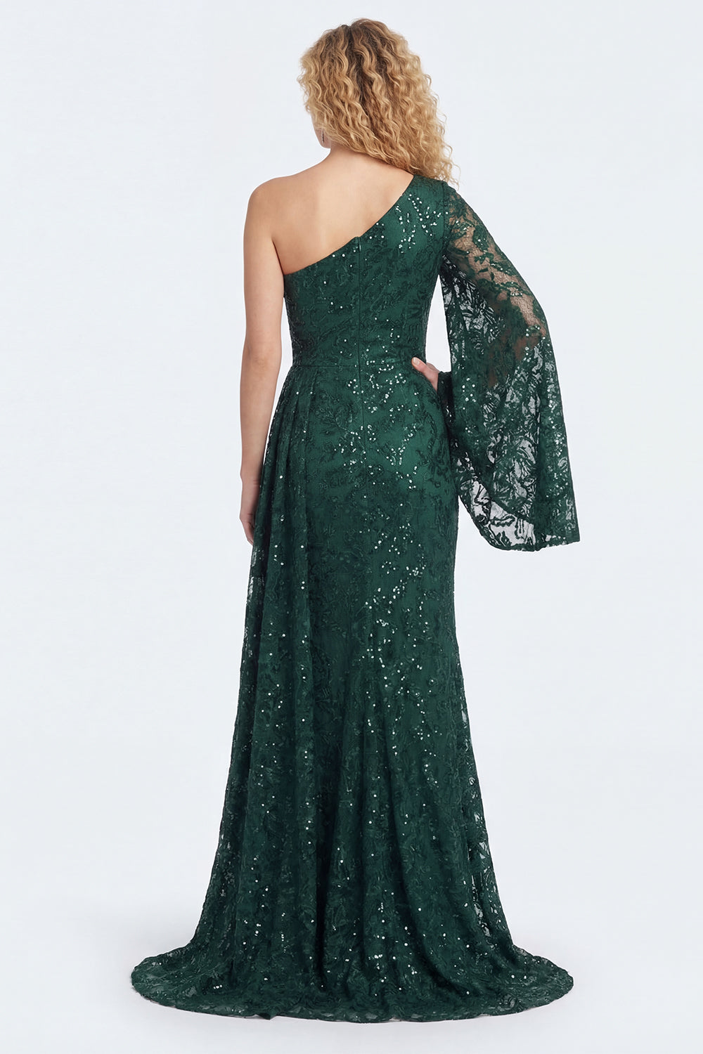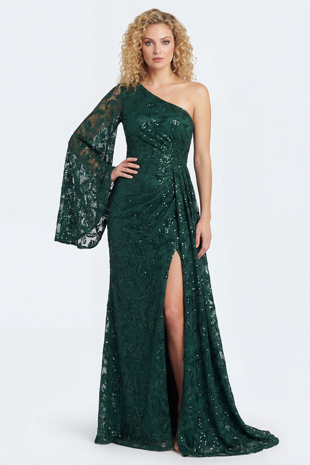 Sparkly One Shoulder Appliqued Dark Green Mother of the Bride Dress