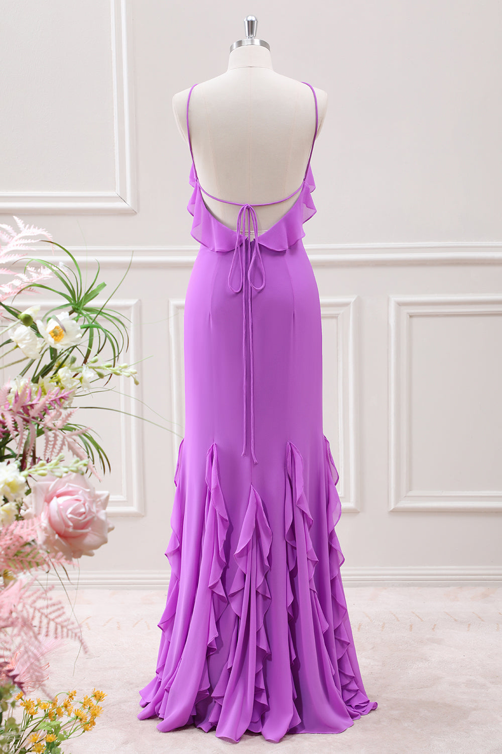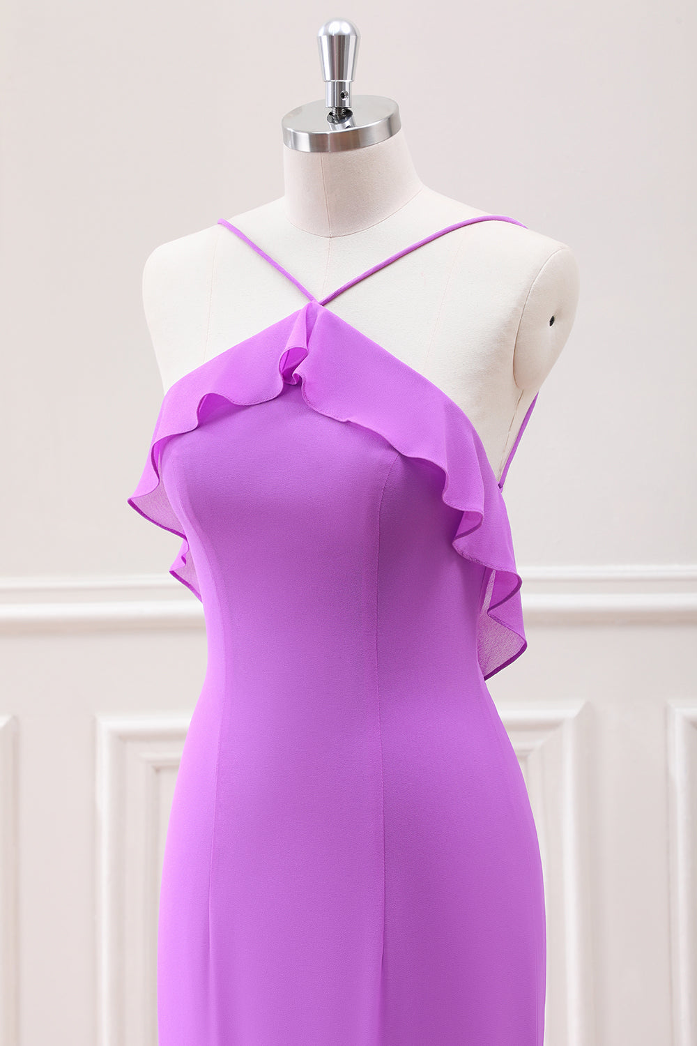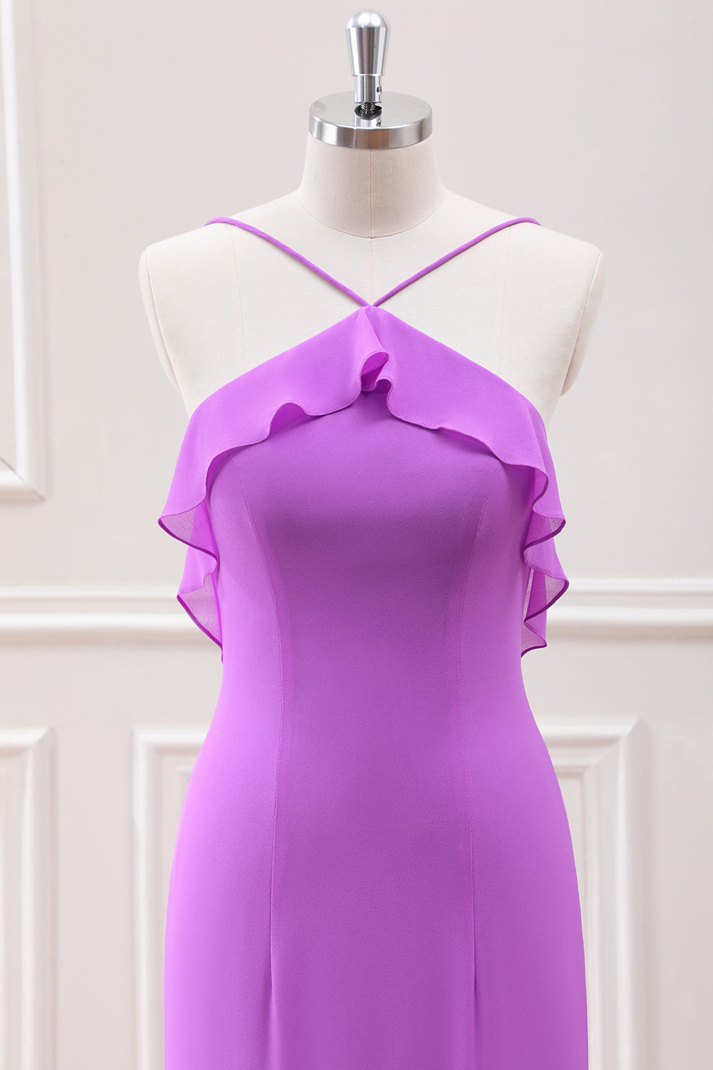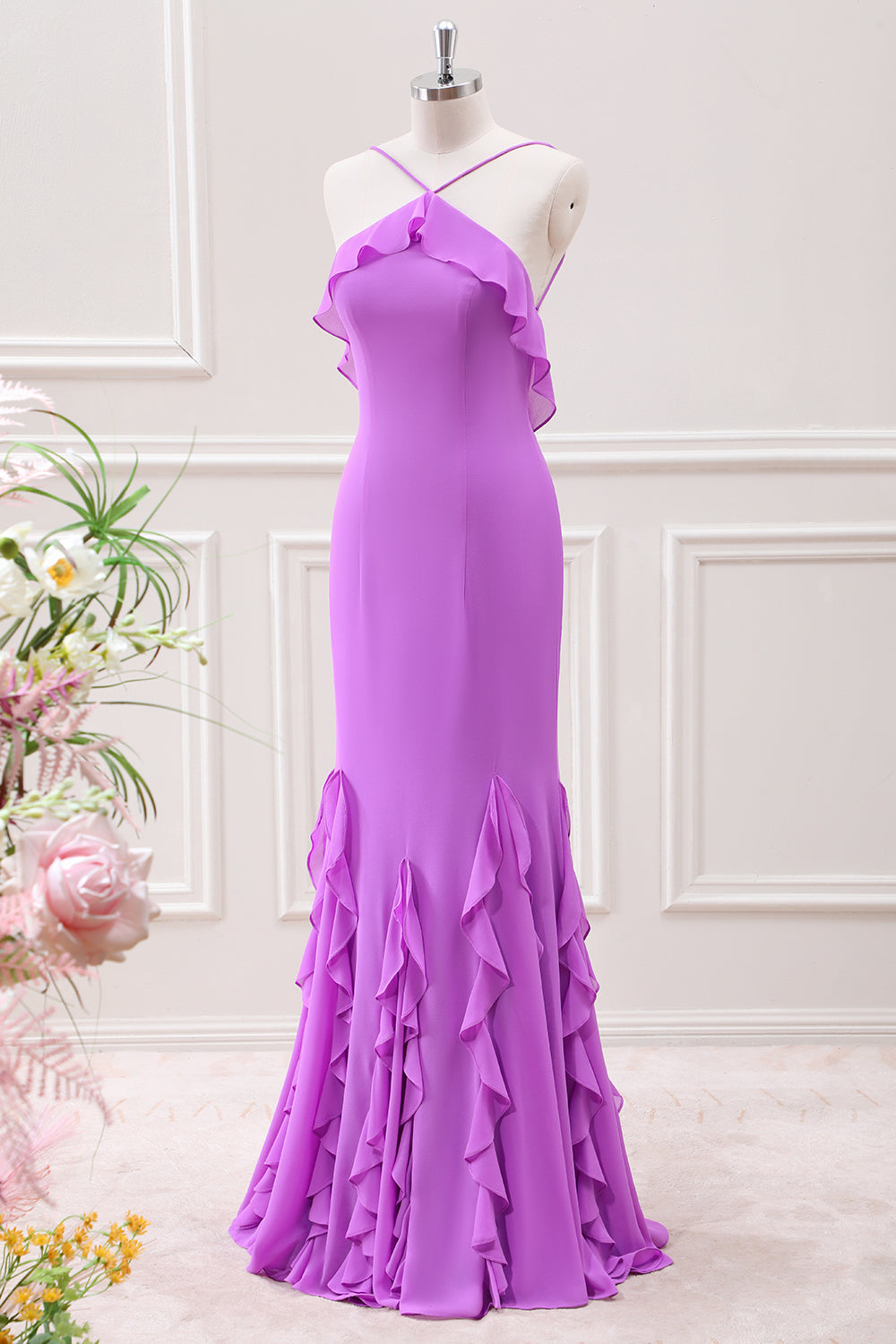 Backless Tahiti Ruffles Halter Mermaid Maxi Dress