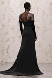 Black Off The Shoulder Long Sleeve Velvet Evening Dress With Lace