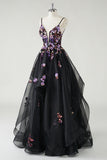 Black Sequined Corset Spaghetti Straps A Line Tulle Prom Dress