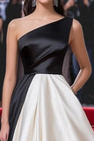 Black&White A Line Ruched One Shoulder Long Gala Dress