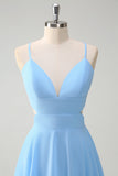 Sky Blue A Line Hollow Out Tiered Chiffon Bridesmaid Dress