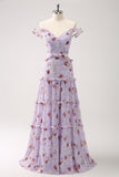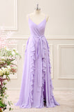 Blue Sheath Floral Ruffles Maxi Dress with Slit