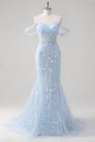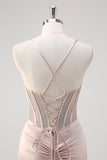 Blush Beaded Corset Ruched Mermaid Prom Dress with Slit