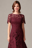 Burgundy Lace High-Low Mother of the Bride Dress with Short Sleeves