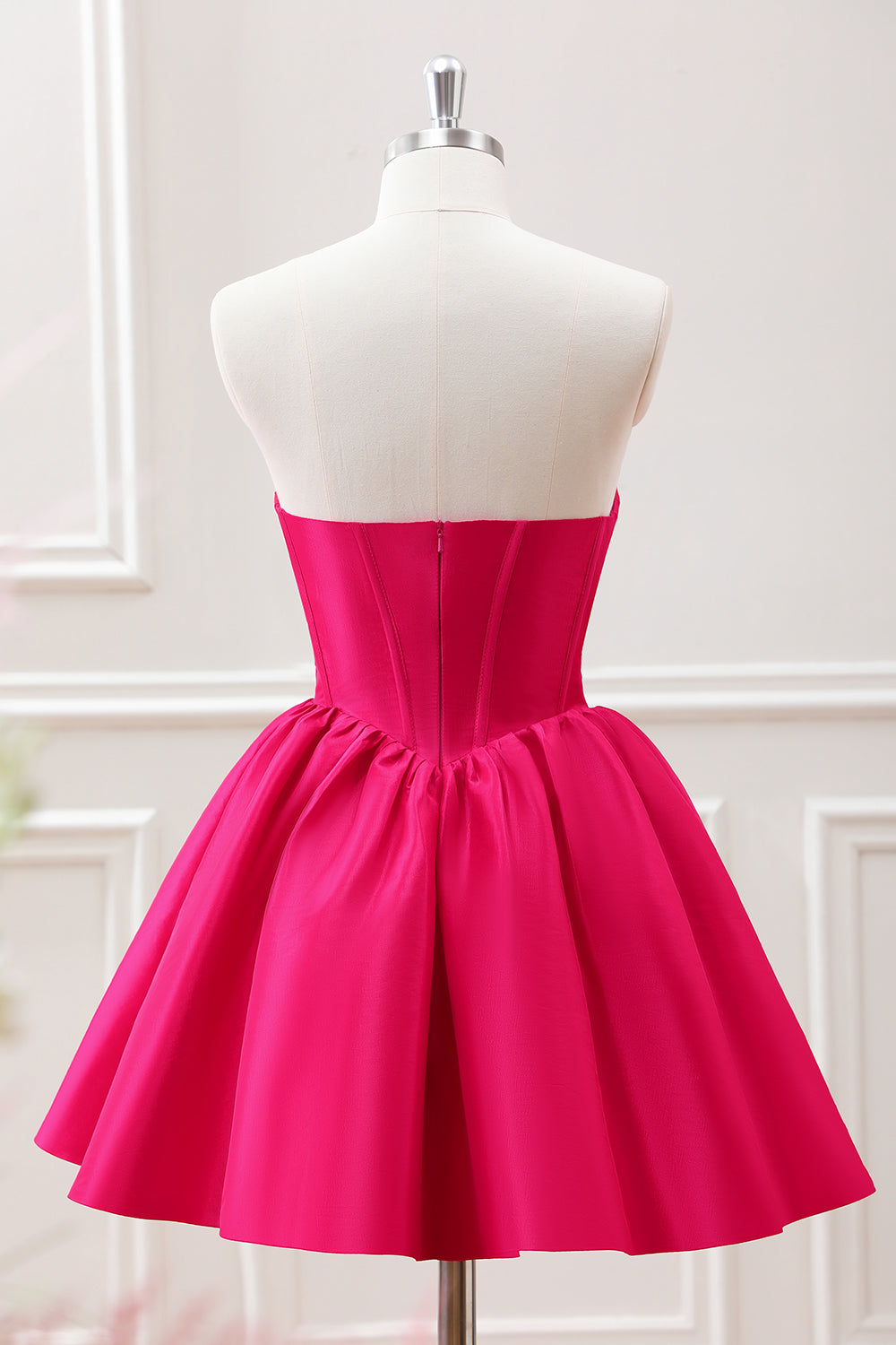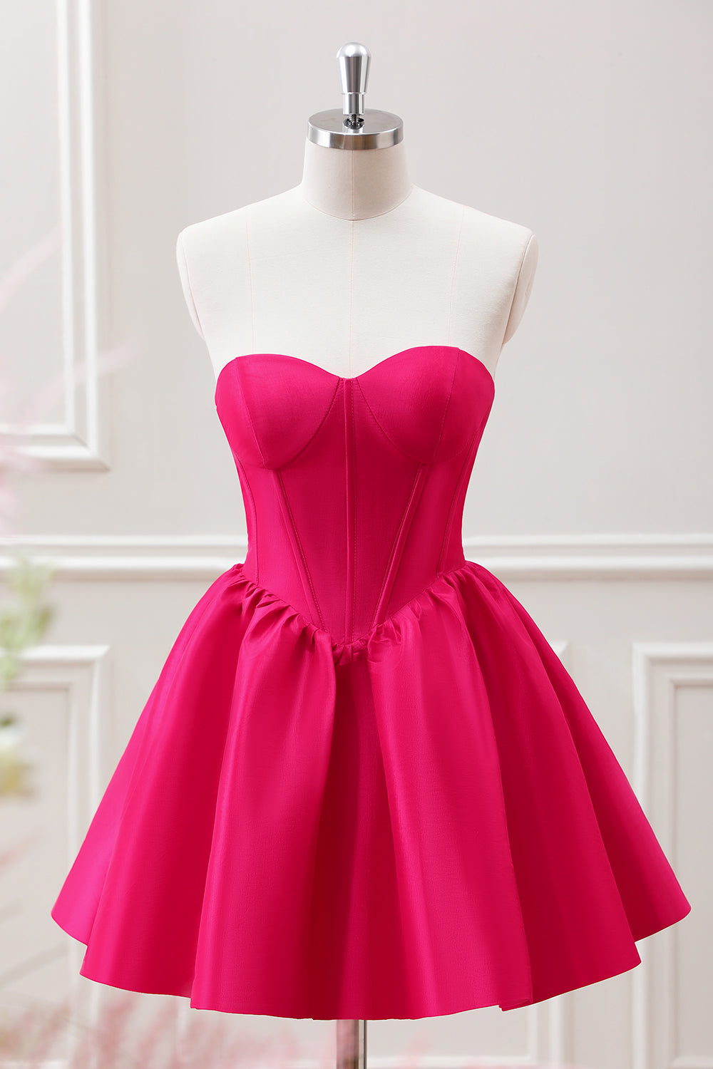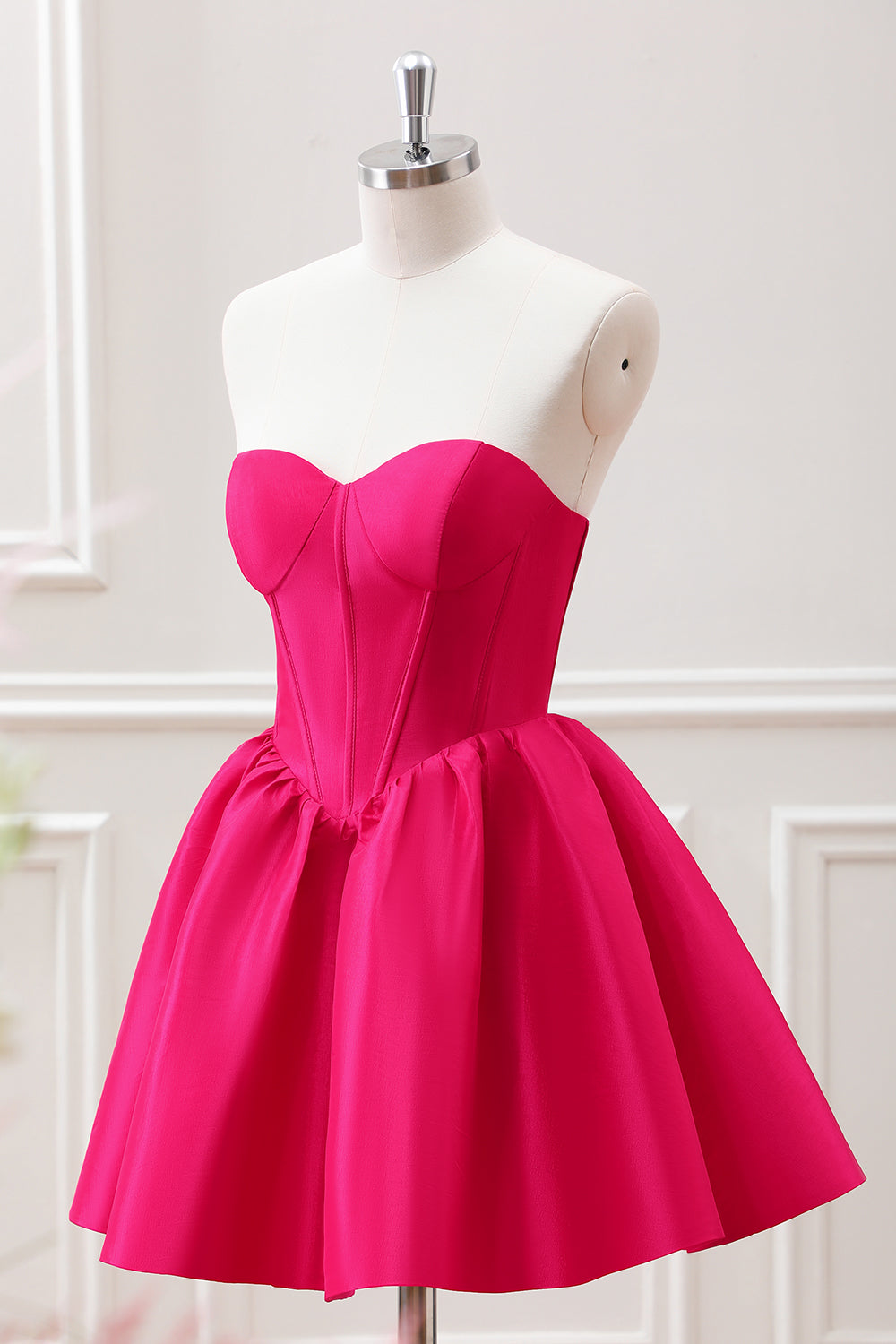 Cute A Line Corset Sweetheart Fuchsia Mini Dress